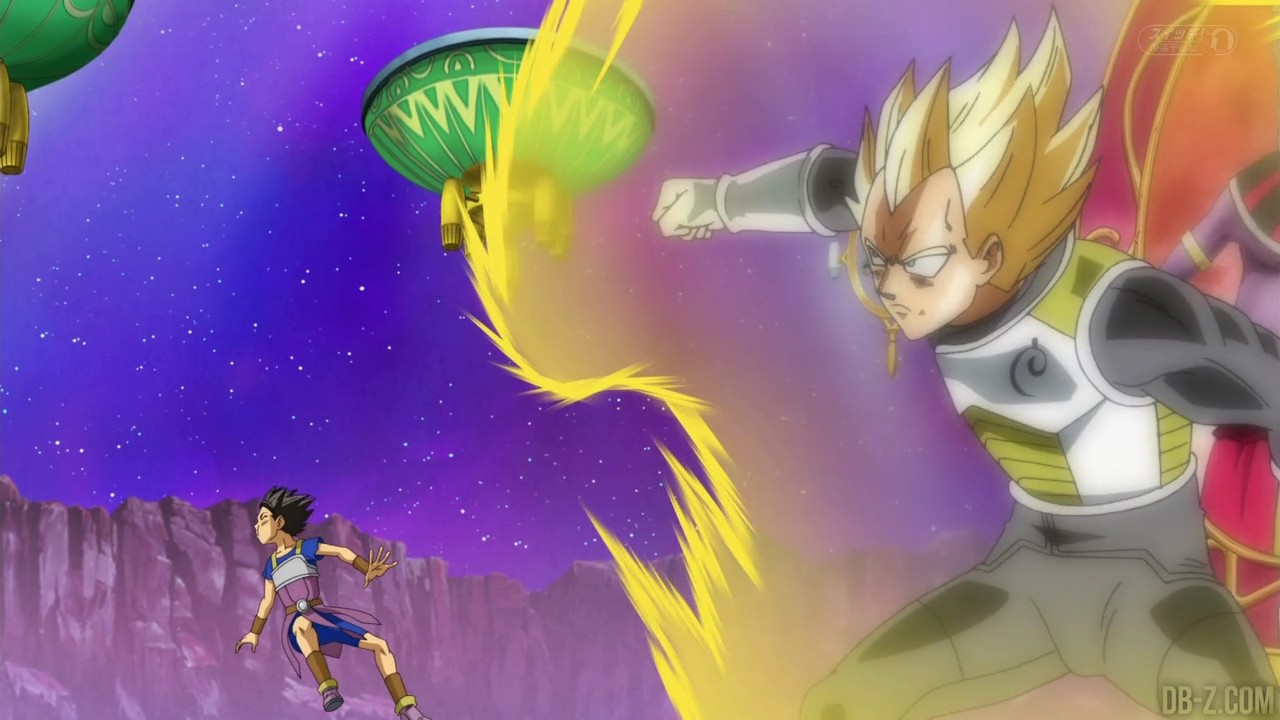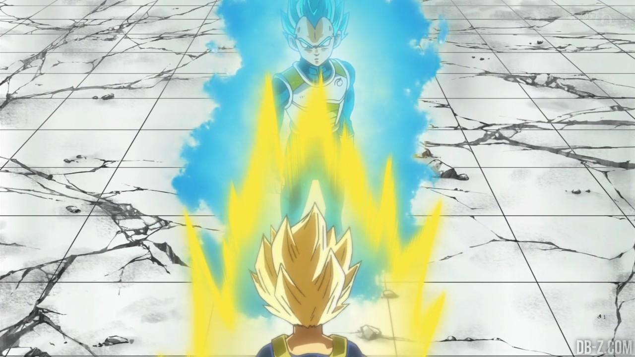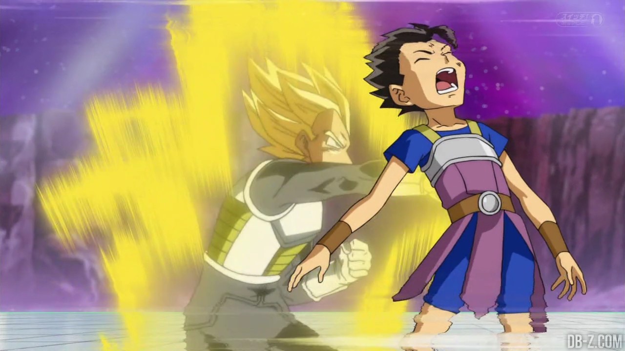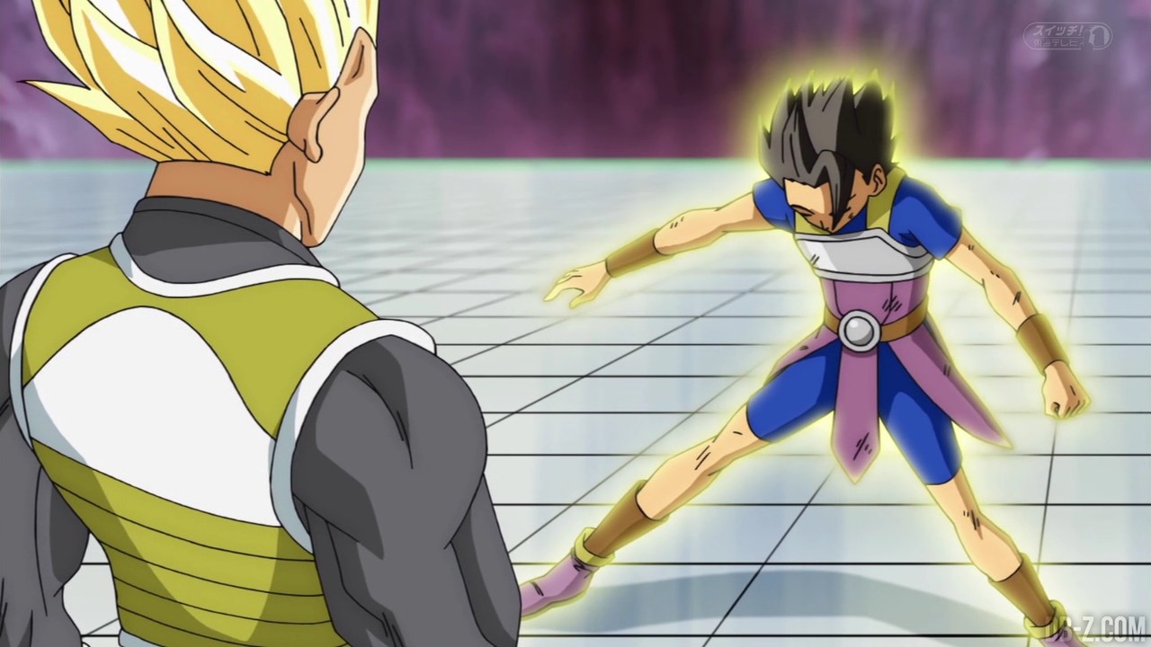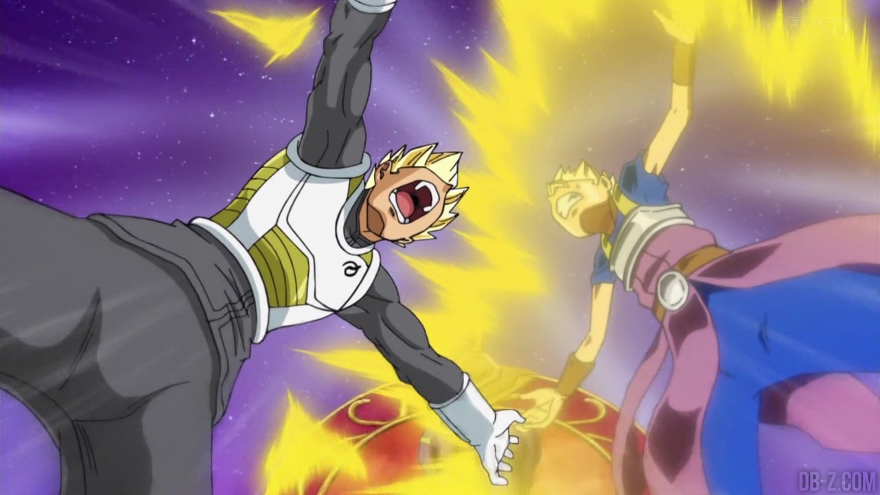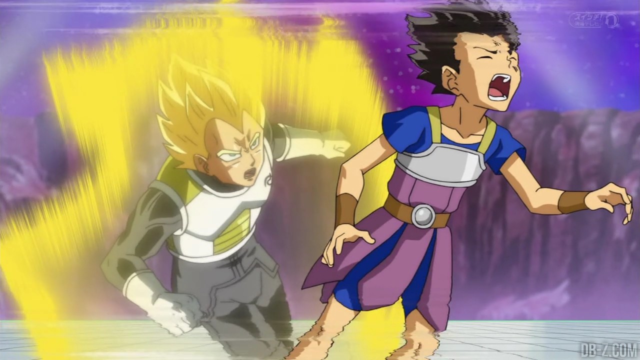 Voici les images de l’épisode 37 de Dragon Ball Super qui a été diffusé ce matin au Japon. Vegeta avait éliminé Magetta, c’est donc au tour de Kyabe d’entrer sur le ring ! Voici en images le combat entre le plus puissant Saiyan de l’Univers 6 et le prince des Saiyans de l’Univers 7 :