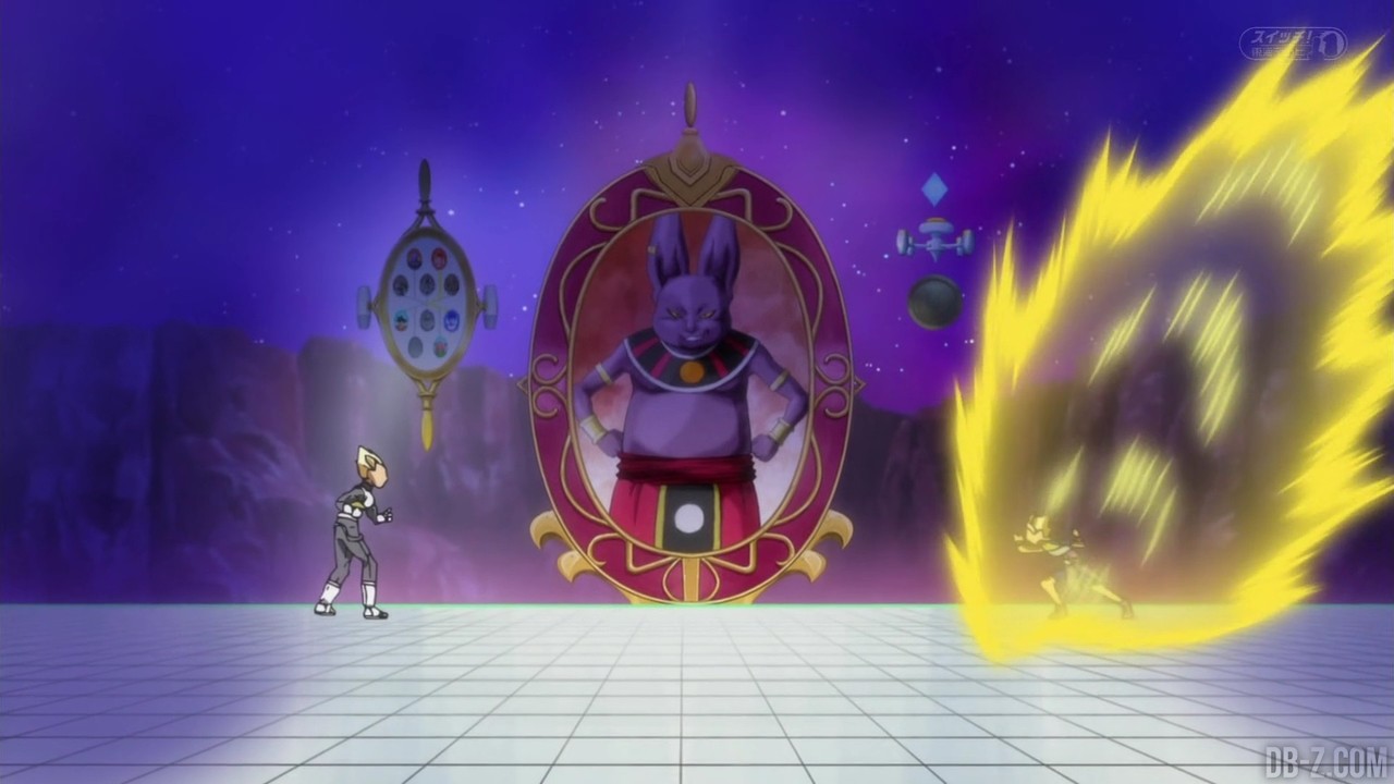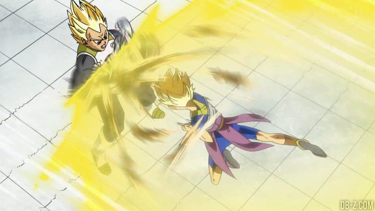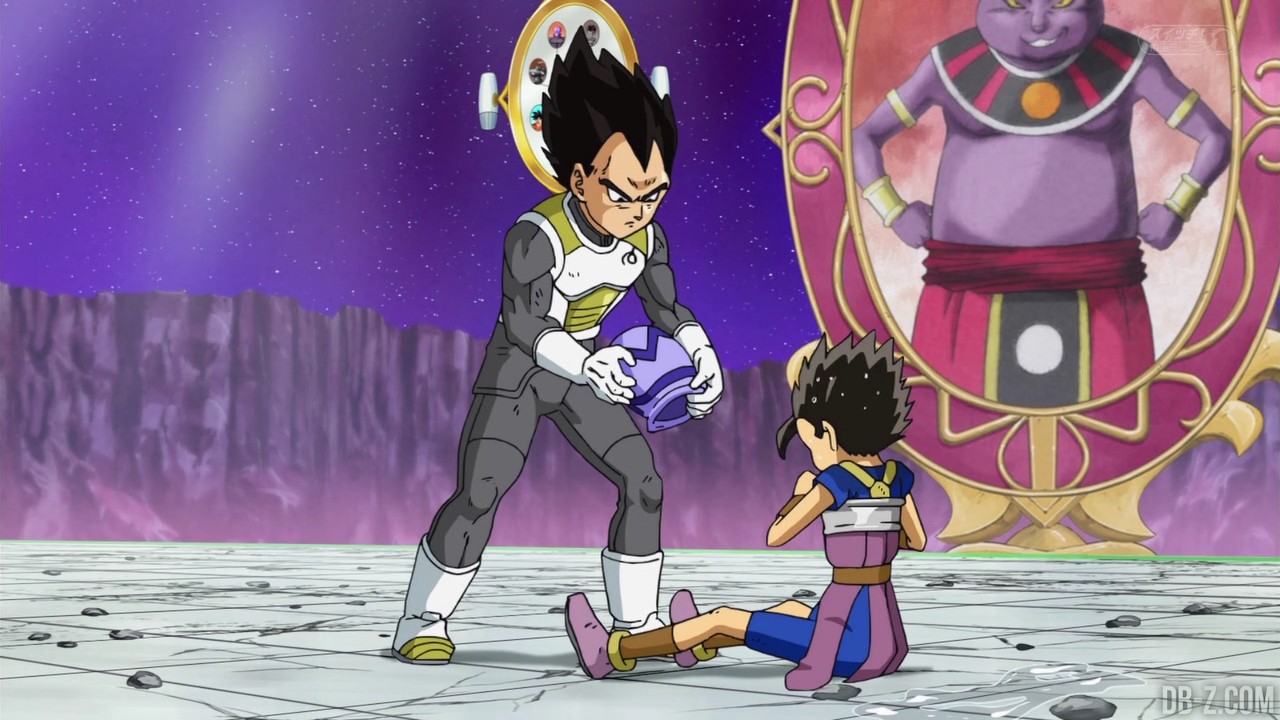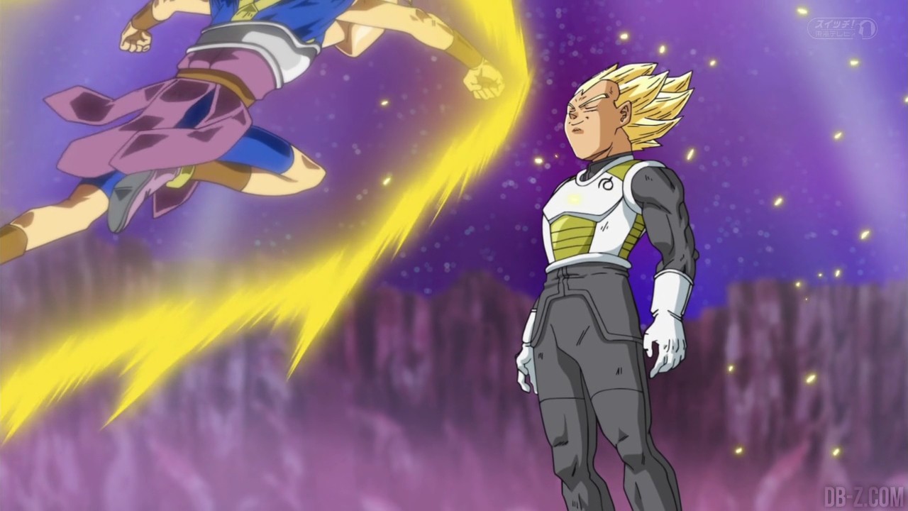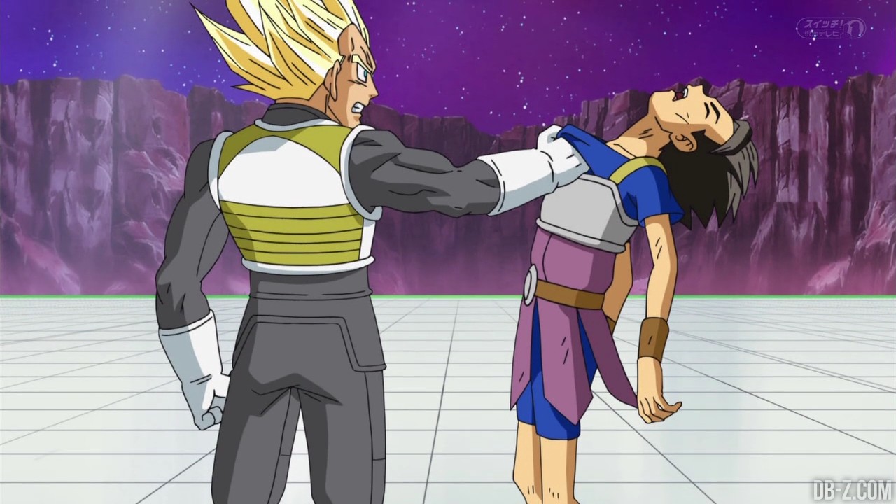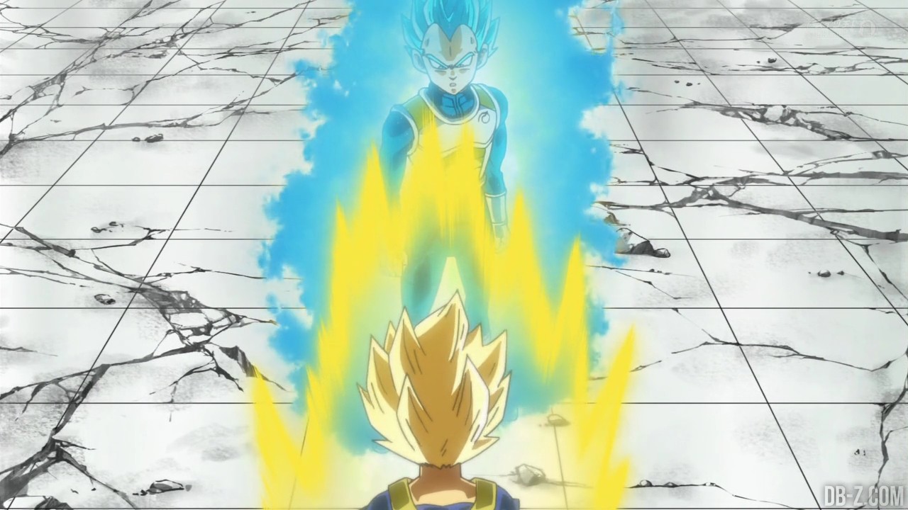 Voici les images de l’épisode 37 de Dragon Ball Super qui a été diffusé ce matin au Japon. Vegeta avait éliminé Magetta, c’est donc au tour de Kyabe d’entrer sur le ring ! Voici en images le combat entre le plus puissant Saiyan de l’Univers 6 et le prince des Saiyans de l’Univers 7 :