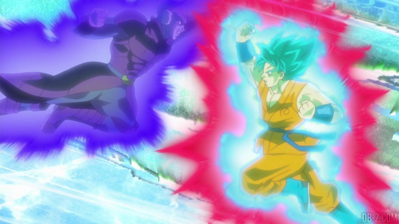 Voici les images de l’épisode 39 de Dragon Ball Super qui a été diffusé ce matin au Japon. Goku est toujours face à Hit, le combattant le plus fort de l’Univers 6 dans ce tournoi, et il a finalement trouvé la faille contre le Tokitobashi de Hit, la technique qui permet d’avancer dans le temps de 0,1 seconde. Voici en images le combat entre le plus puissant combattant de l’Univers 6 et Goku pour l’Univers 7 :