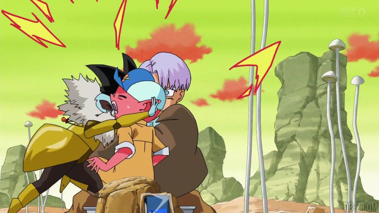 Synopsis : Un jour, Monaka, qui n’était en fait qu’un livreur d’une société de transport, va à la maison de Bulma pour livrer un paquet et se retrouve dans une situation délicate en l’aidant dans une de ses expériences. Pendant ce temps, Trunks et Goten, qui jouaient dans le véhicule de Monaka, s’endorment. Monaka, n’étant pas au courant, décolle pour la planète Potofuoù se trouve la « Choujinsui », une eau miraculeuse protégée par Potaaju. Mais son sceau a été brisé par Guriiru…