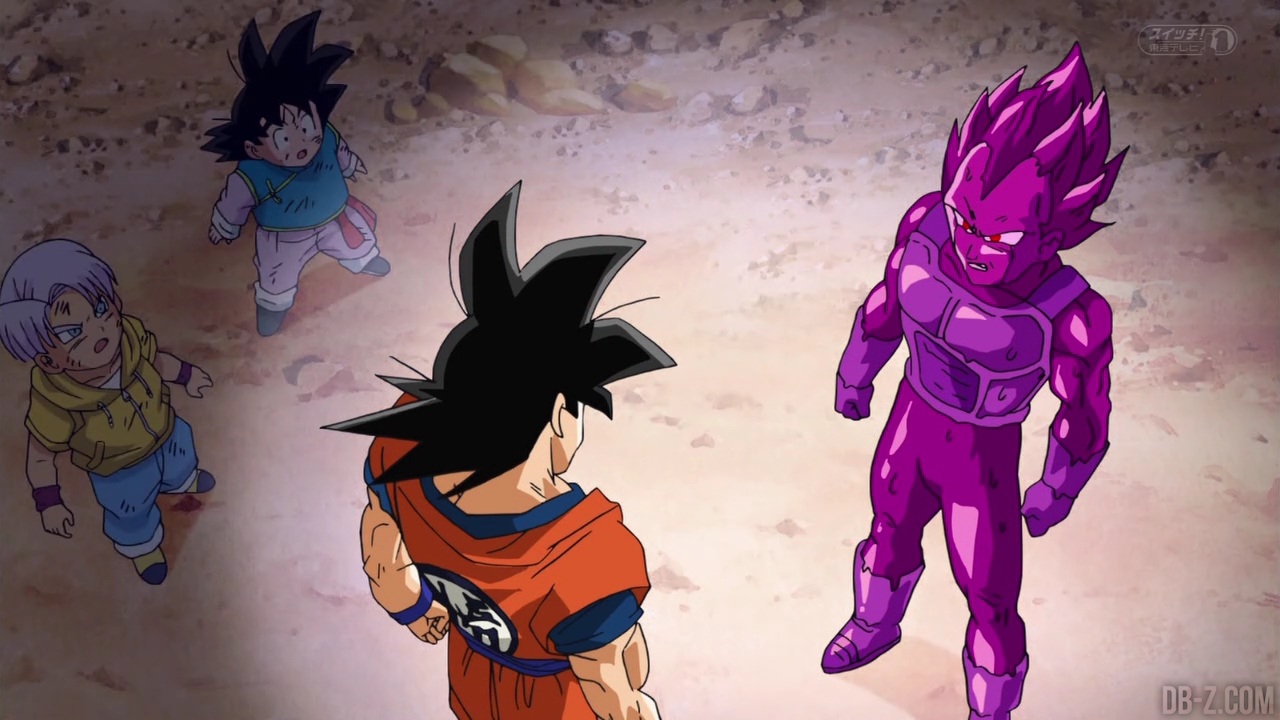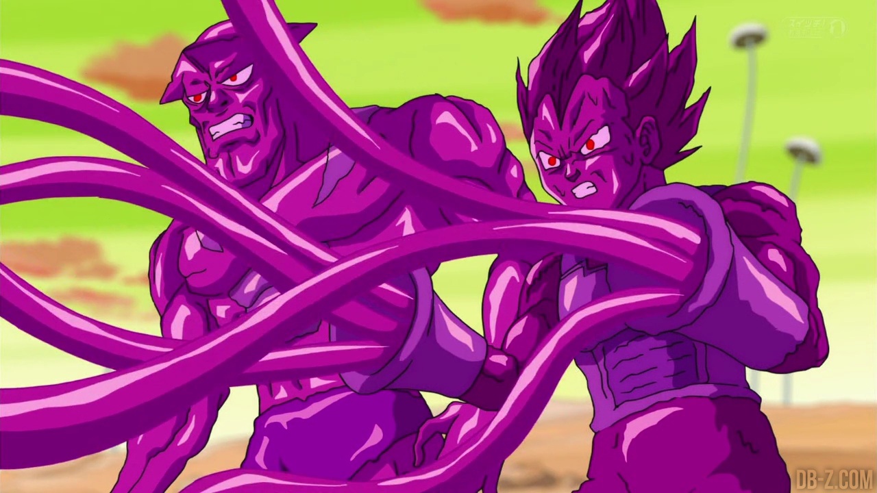 Synopsis : Goku affronte le faux Vegeta, mais il se rend vite compte qu’il possède la même force que le Vegeta original. Alors que liquide violet tente d’absorber les autres, Vegeta enrage sur le fait que Goku n’arrive pas à venir à bout du Faux Vegeta, et lui dit qu’il ne lui pardonnera pas s’il perd.