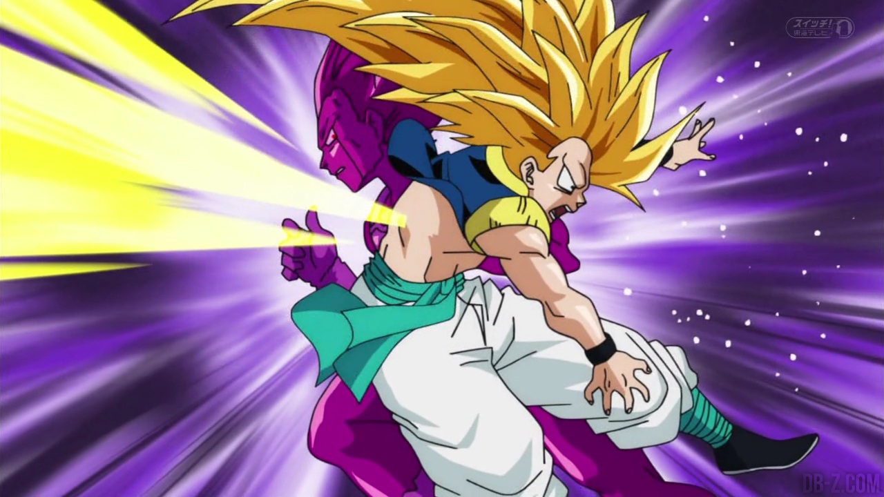 Sur la planète Kaio, Goku prend une pause dans son entraînement pour manger. Il sent tout à coup le ki de Gotenks et de Vegeta, et sait qu’ils se battent. De retour sur la planète Potofu, Gotenks se divise en Goten et Trunks. Le faux Vegeta tente de les achever, mais Goku se téléporte devant eux. Il est étonné de voir deux Vegeta : l’un d’entre eux violet, et l’autre transparent ! Mais Vegeta lui donne une courte explication de la situation : en gros, il a besoin de vaincre le faux Vegeta dans les trois prochaines minutes ! Avec se fierté habituelle, Vegeta doute sarcastiquement que Goku puisse vaincre sa copie, tandis que Goku est juste excité à l’idée de se battre contre quelqu’un au niveau de Vegeta.