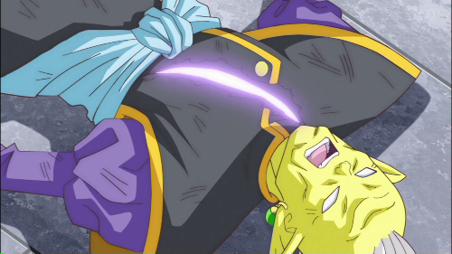 Goku ne comprend rien : il a vu Zamasu du passé se faire tuer par Beerus, mais Black explique que grâce à l’Anneau Temporel, rien de ce qui se passe dans le passé ne peut les affecter. Seuls les Kaioshins peuvent utiliser les anneaux temporels, et c’est pourquoi il a tué Gowasu : pour hériter de son rôle en tant que Kaioshin, et pour prendre prenant son anneau temporel.