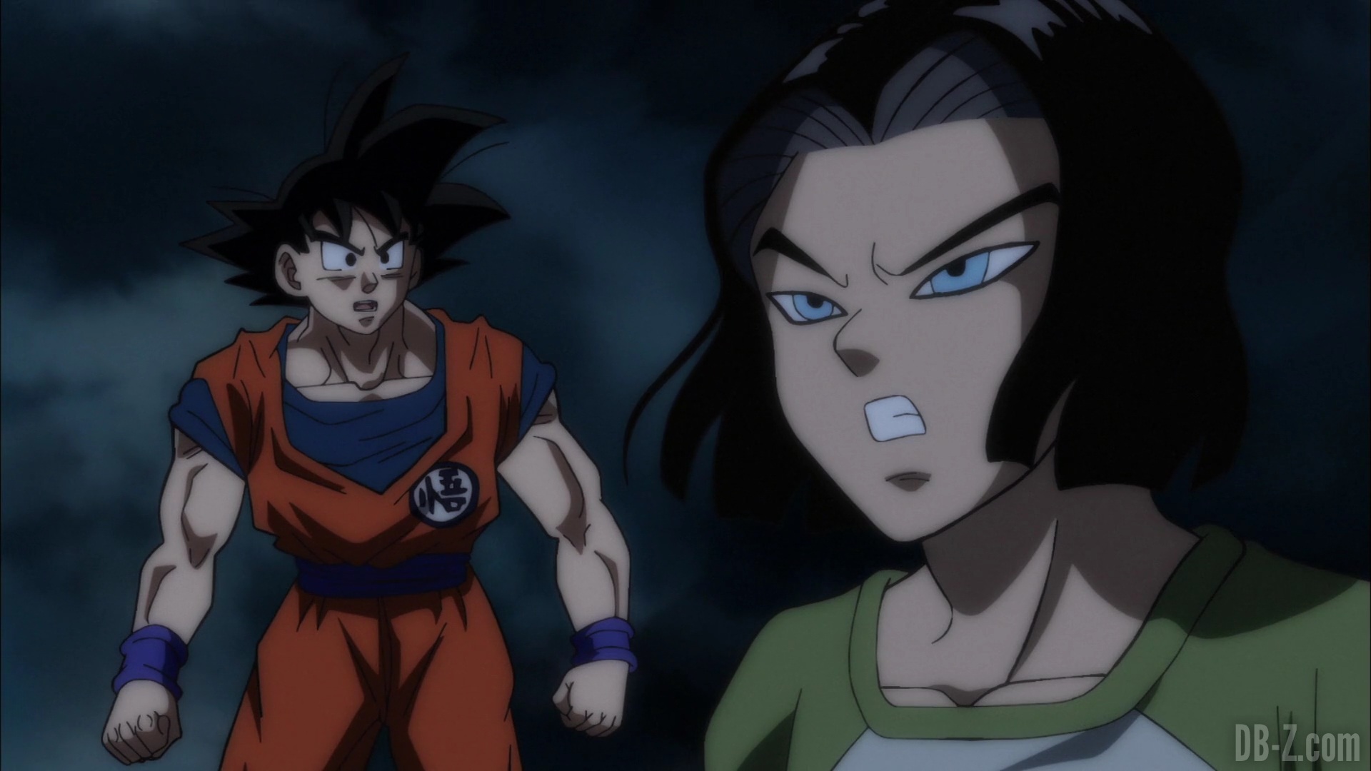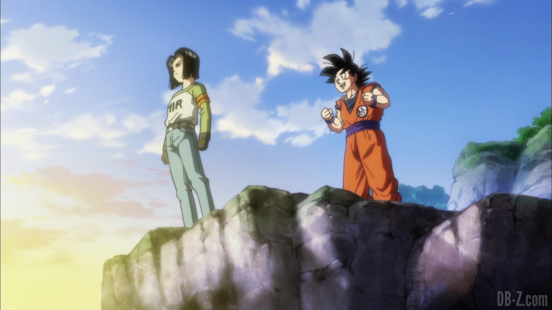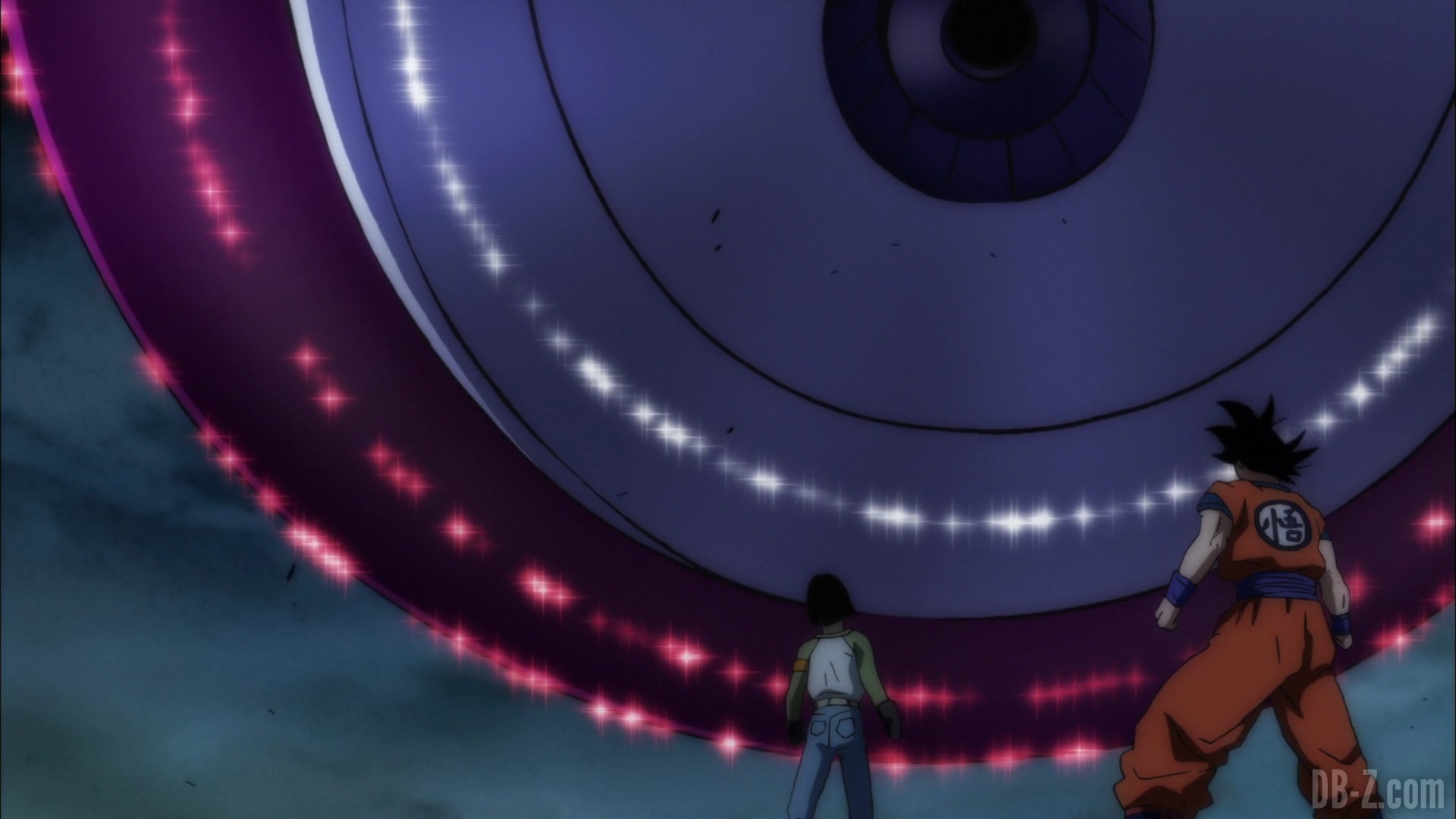 Résumé n°1 : Après que C-17 ait refusé l’invitation de Goku qui souhaitait le recruter, Goku tente de le convaincre à nouveau. Les deux détectent alors une présence qui s’approche. Le ciel s’obscurcit, et quand ils lèvent les yeux, ils voient un vaisseau dans le ciel.