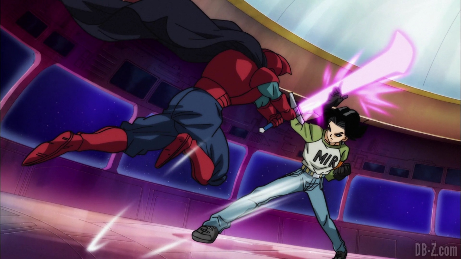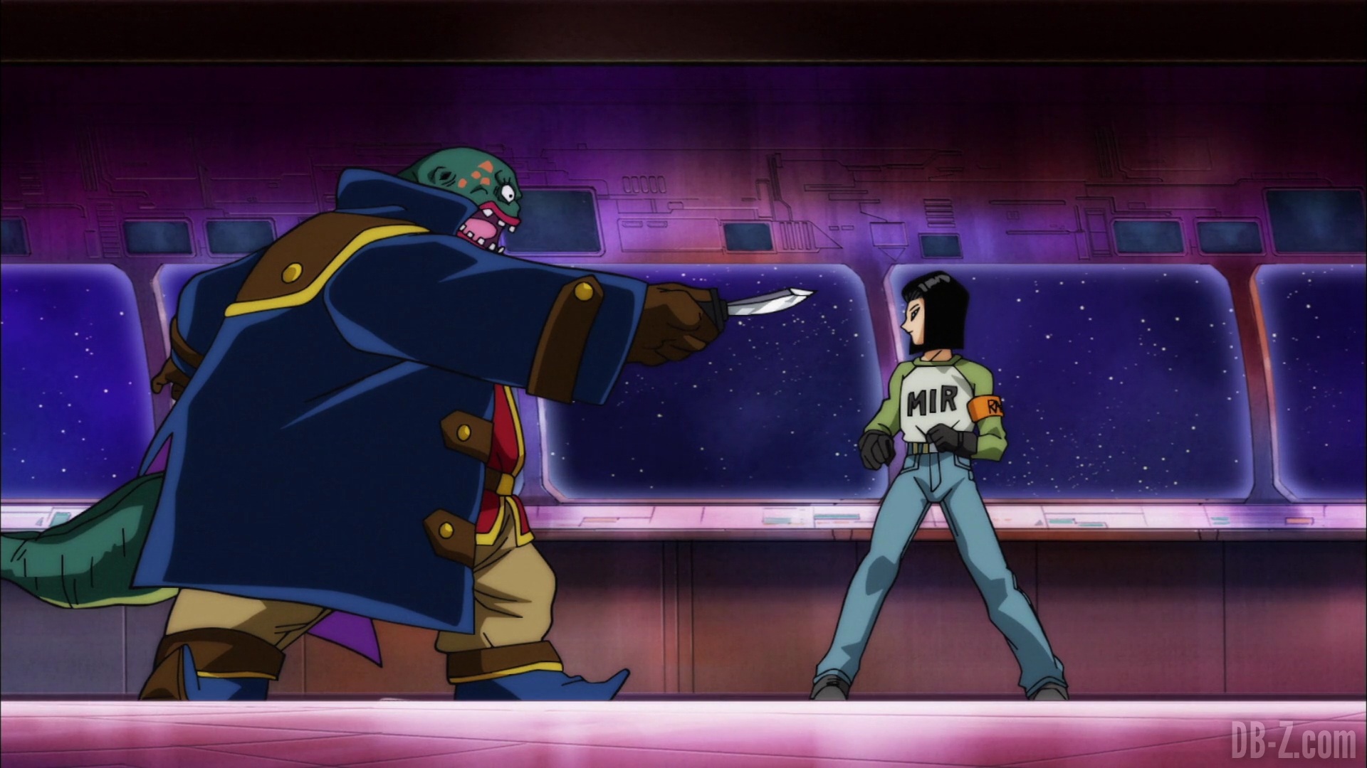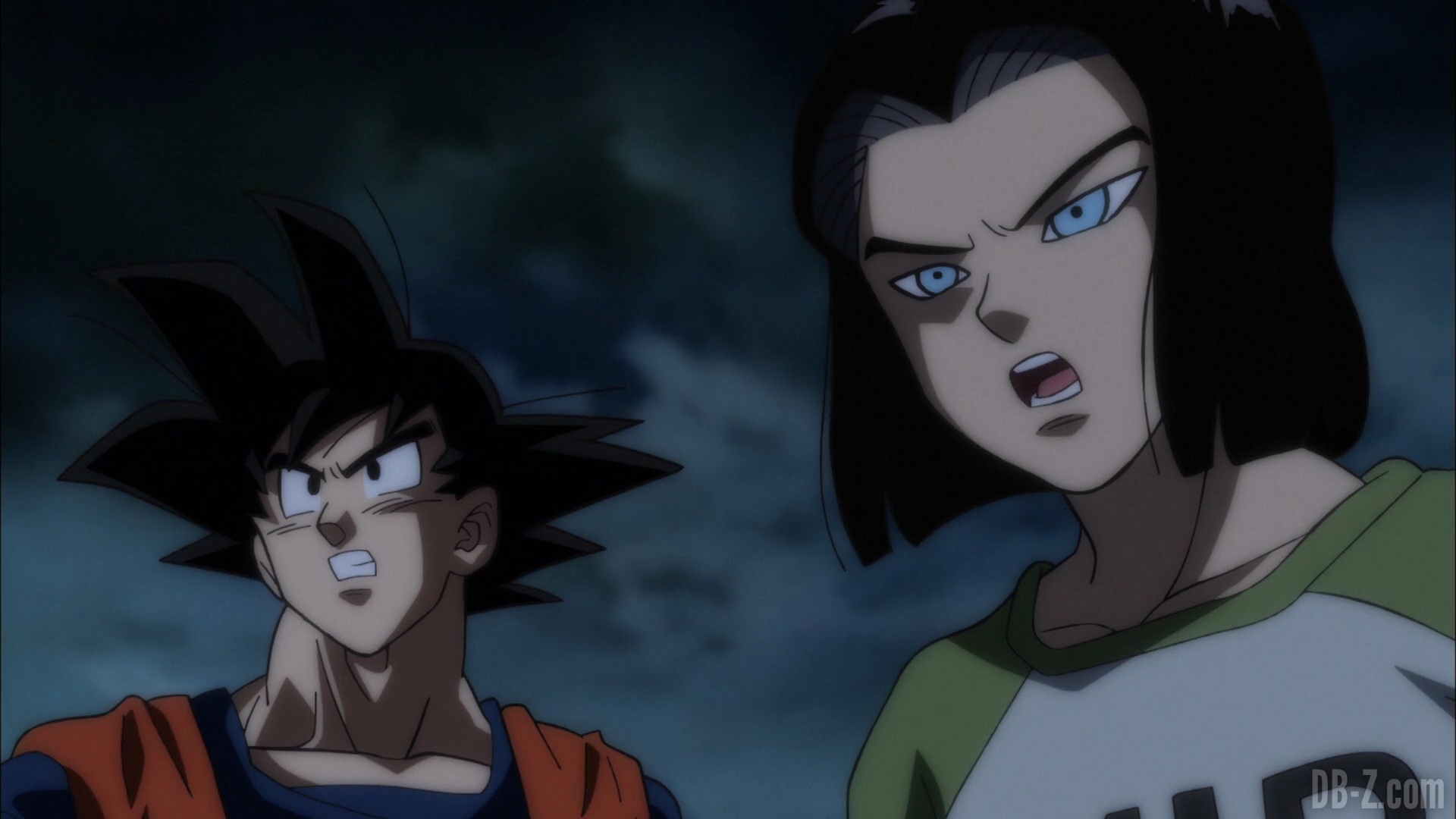 Résumé n°1 : Après que C-17 ait refusé l’invitation de Goku qui souhaitait le recruter, Goku tente de le convaincre à nouveau. Les deux détectent alors une présence qui s’approche. Le ciel s’obscurcit, et quand ils lèvent les yeux, ils voient un vaisseau dans le ciel.