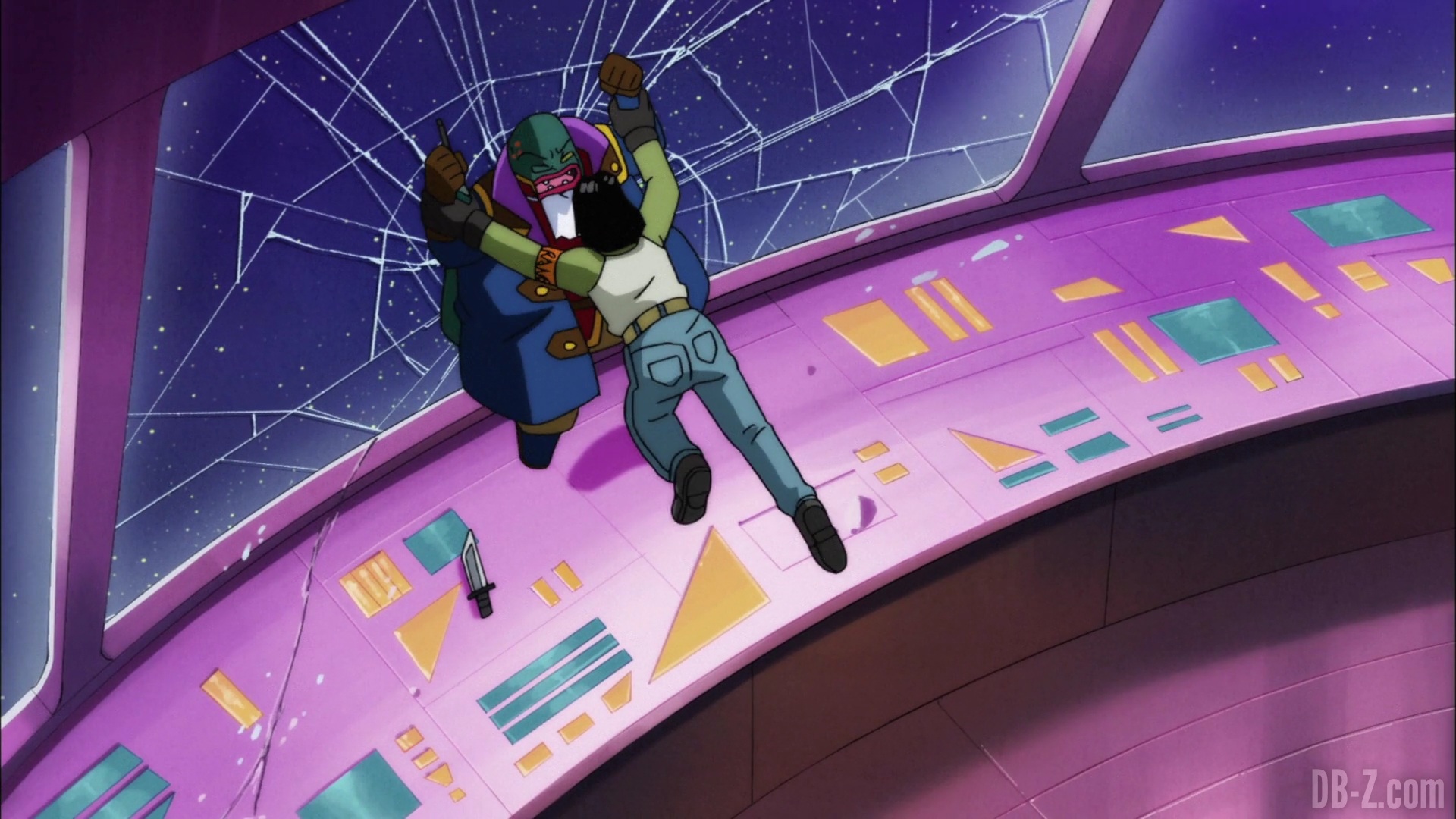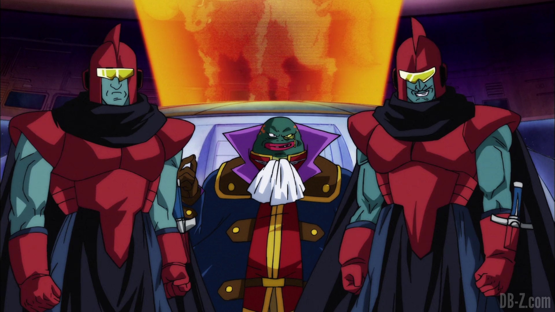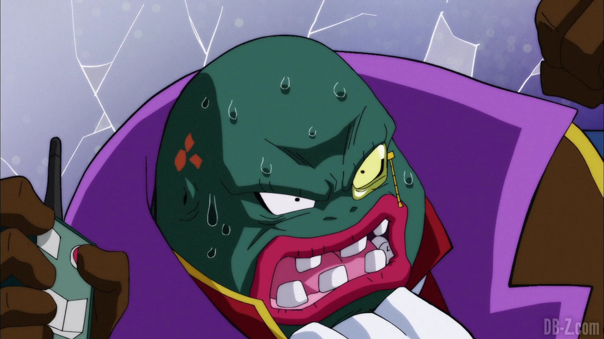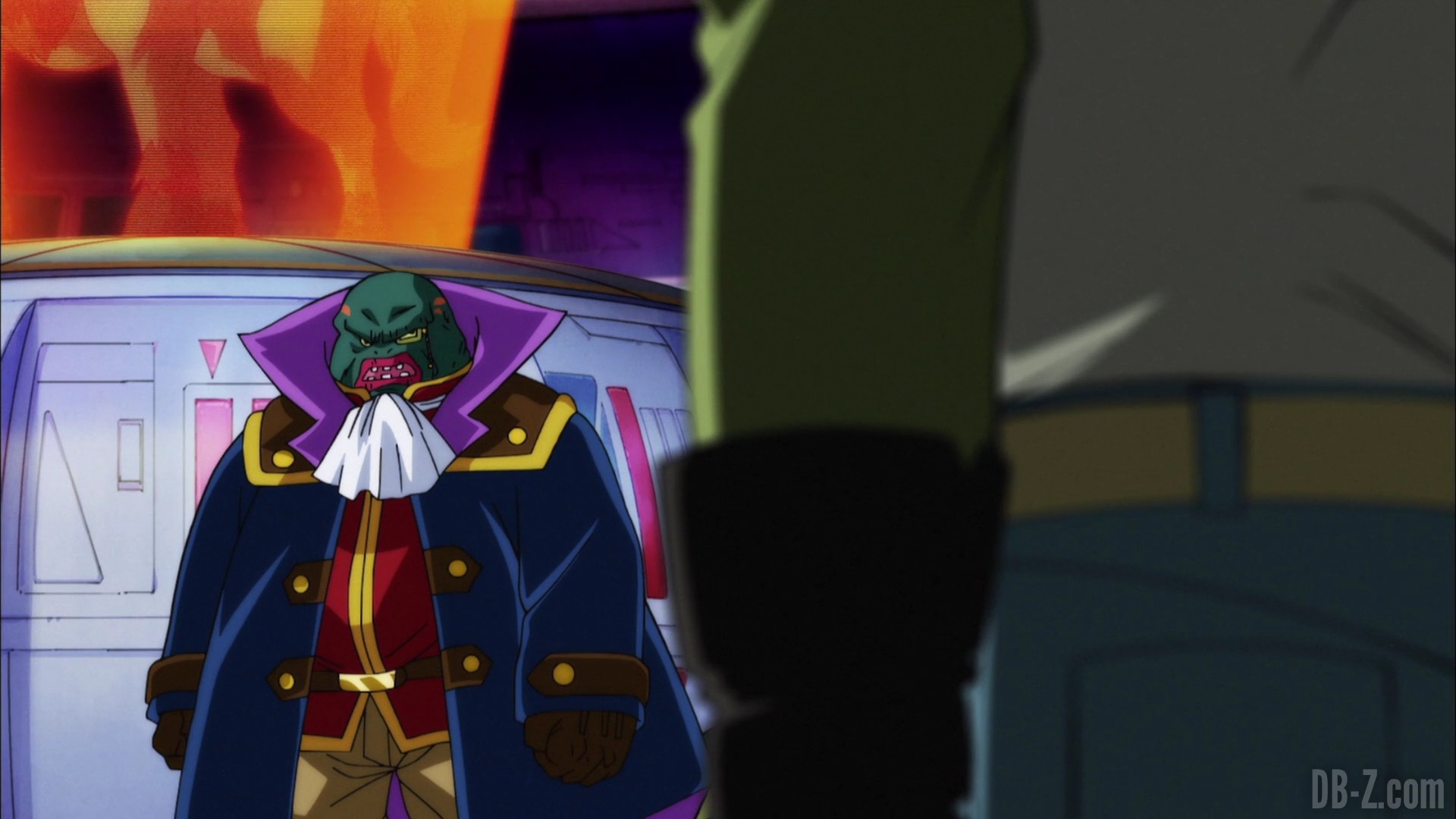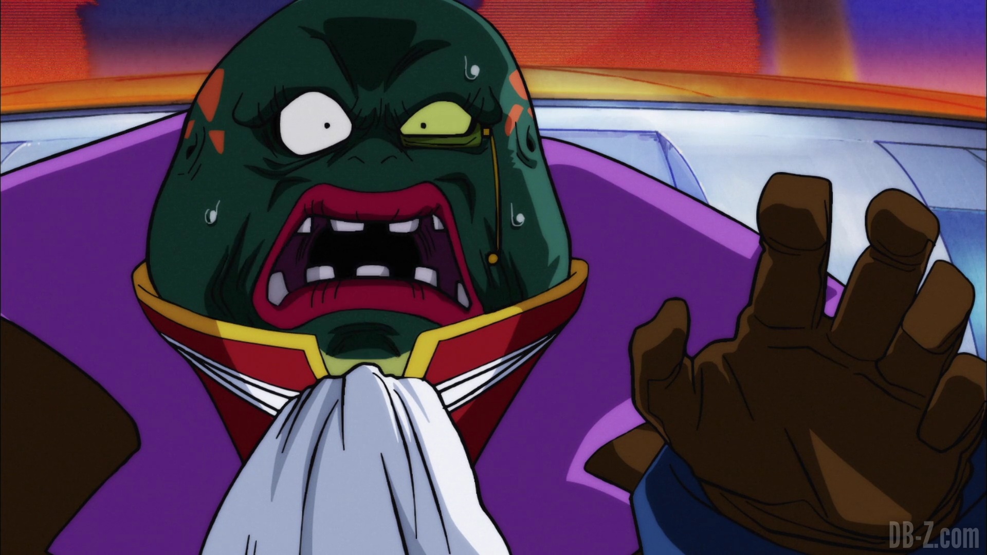 Et il le fait ! Le boss appuie sur le bouton, et le vaisseau explose… mais en fait, cette partie est un rêve de Beerus qui se réveille effrayé. Il dit à Whis qu’il a eu un terrible cauchemar dans lequel Goku est mort. Ce doit être un mauvais présage ! Le cri de Beerus fait que Bra commence à pleurer, et Vegeta enrage contre Beerus. Sa maison n’est pas un hôtel !
