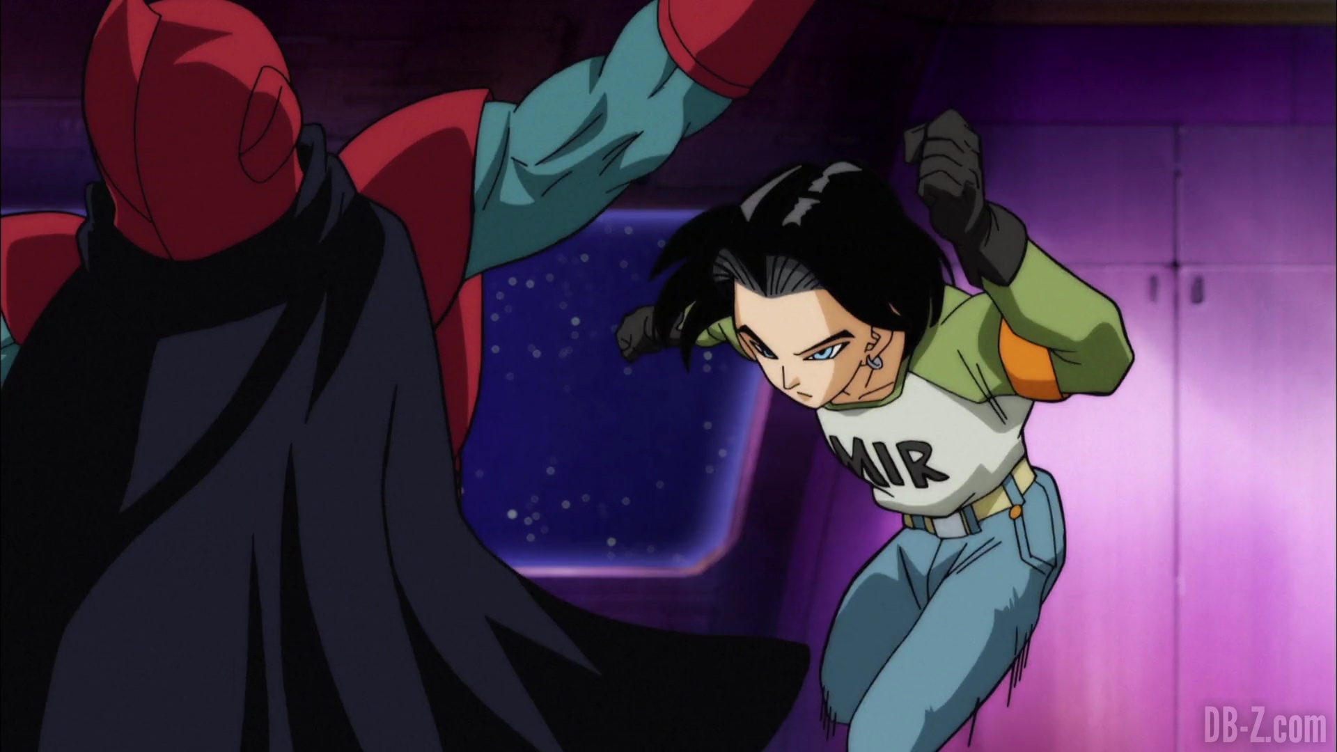 Une alarme sonne et les gardes se précipitent, mais Goku les bat facilement. C-17 demande à Goku de faire attention de ne pas endommager le vaisseau spatial, sinon les animaux pourraient mourir. Sur terre, Krilin peut sentir le ki de Goku au loin, et se demande s’il a réussi à recruter C-17. C-18 pense que Goku et C-17 sont tous les deux assez enfantins, et elle espère qu’ils ne se sont pas embrouillés ensemble.