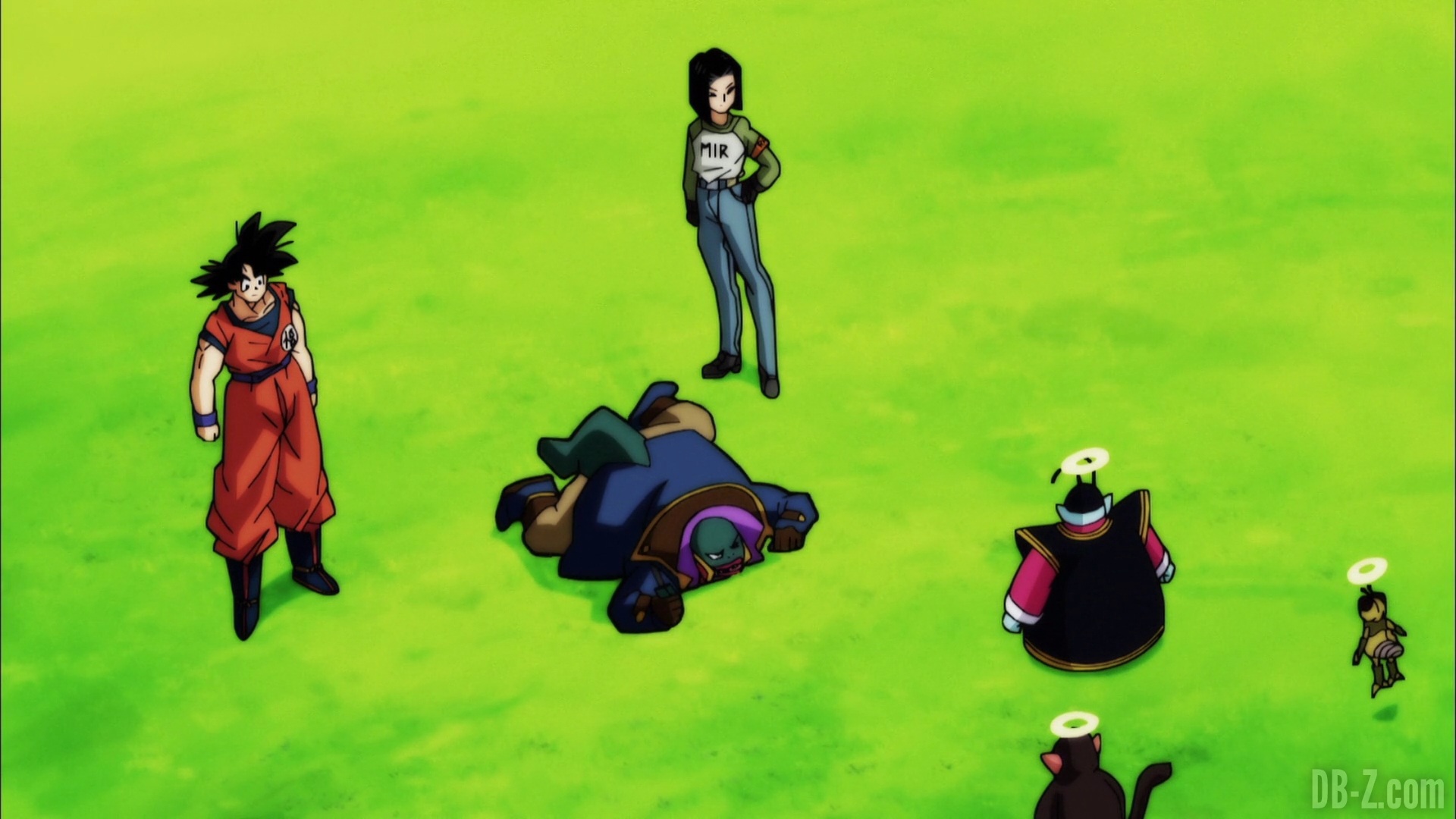 Mais Goku saisit C-17 et le braconnier et les téléporte vers la planète de Kaio. Goku a décidé d’apporter le méchant autodestructeur ici comme il l’avait fait avec Cell ! Mais Kaio n’est pas content : sa planète n’est pas une décharge à bombe ! Goku pense que ce sera bien, puisque le patron ne sera probablement pas capable de se déplacer sous la lourde gravité de la planète de Kaio, et même s’il explose, Kaio est déjà mort.