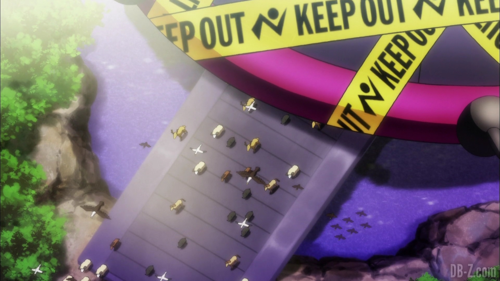 Un vaisseau spatial gigantesque descend du ciel et commence à enlever les animaux rares de l’île. C-17 s’envole pour les arrêter, et Goku attrape C-17 pour se téléporter à l’intérieur du vaisseau alors qu’il repart vers l’espace. À l’intérieur, ils se retrouvent entourés de cages pleines d’animaux capturés sur d’autres planètes.