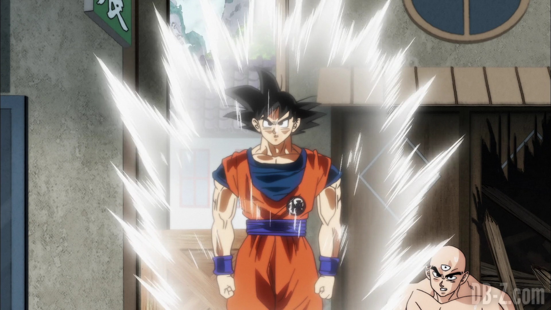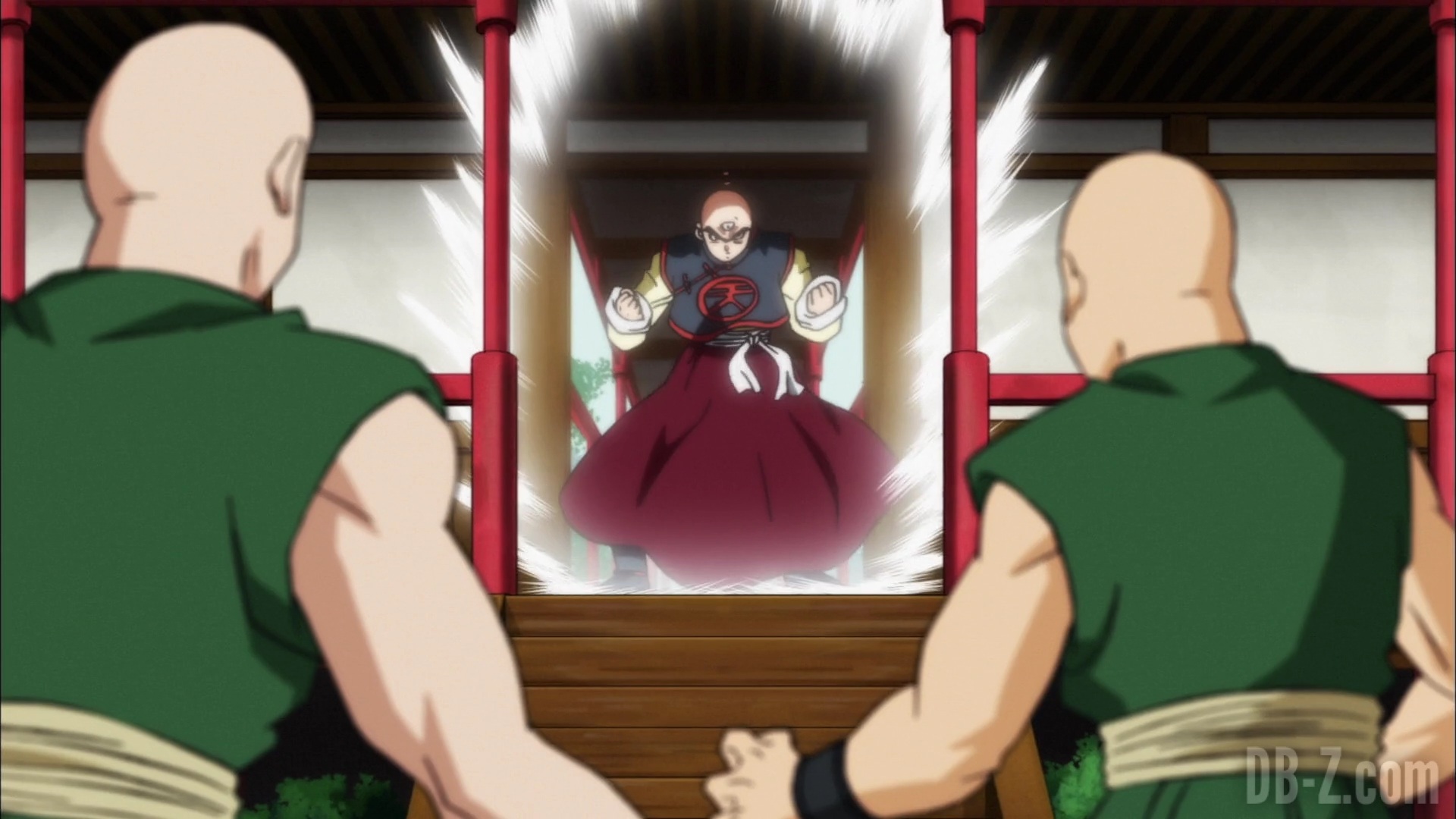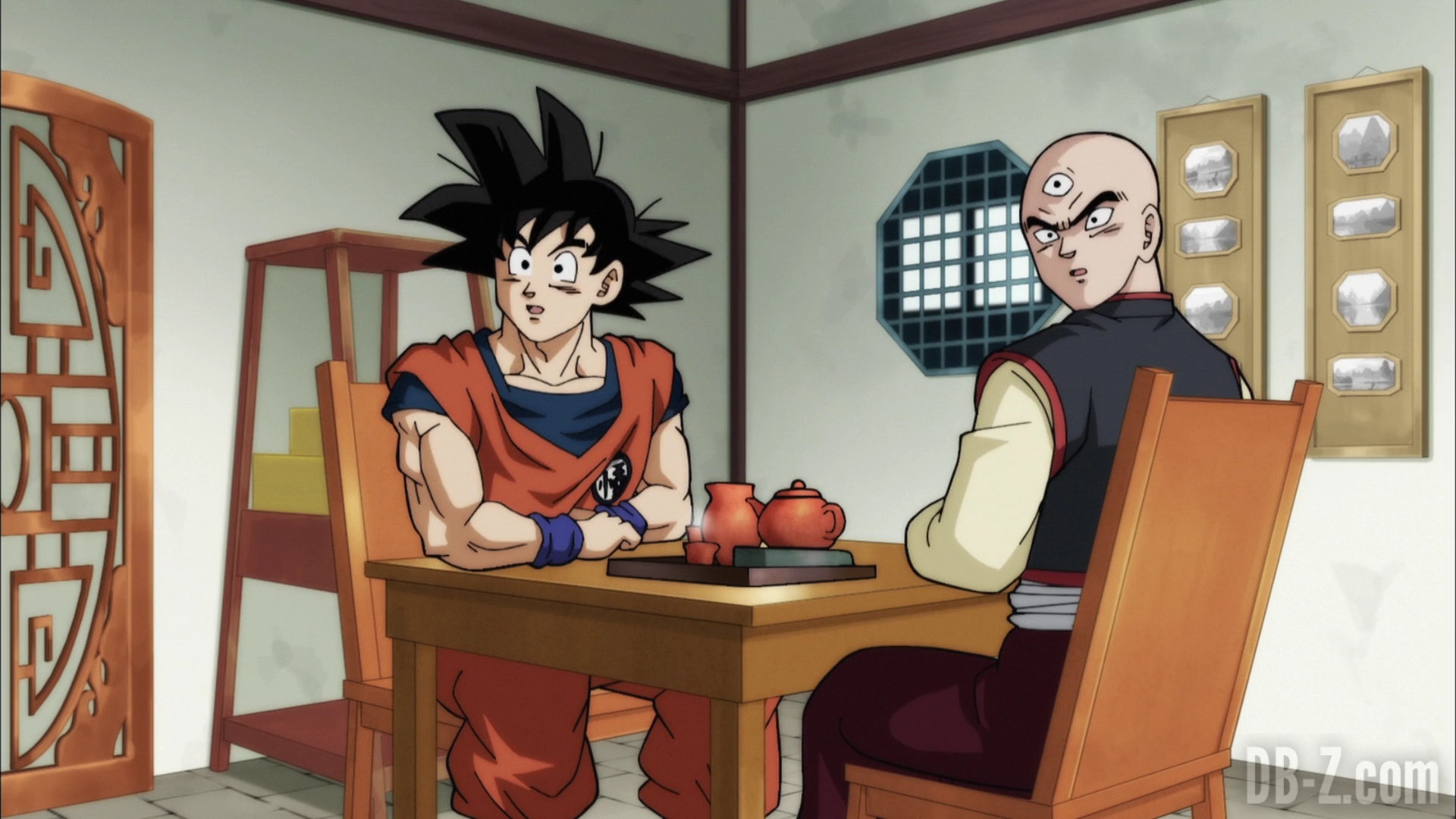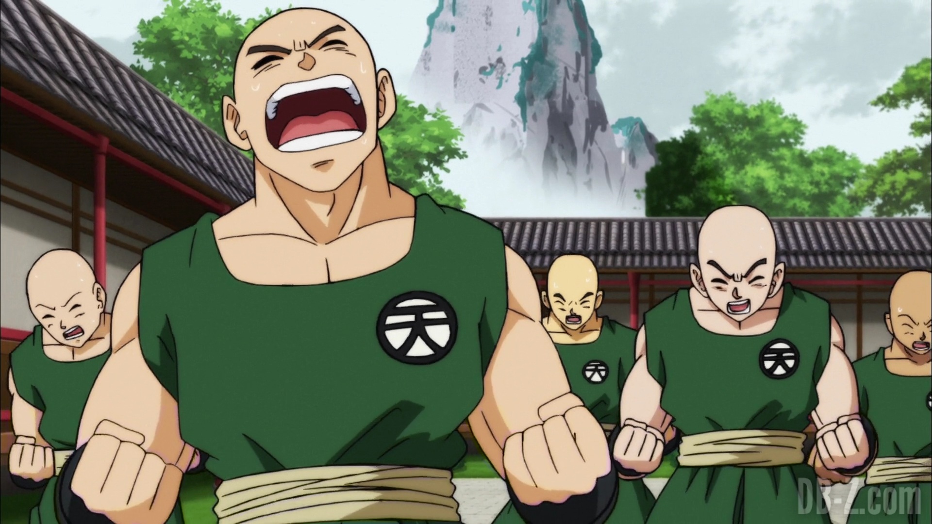 Goku arrive au dojo, et Tenshinhan donne congé à ses étudiants pour la journée afin qu’ils puissent discuter (ils ne se sont pas vus depuis le match contre l’Univers 6). Goku est impressionné par le fait que Tenshinhan a tant d’étudiants, même si Tenshinhan minimise. Pourtant, Goku peut dire que Tenshinhan s’est beaucoup entraîné, et il veut le recruter lui et Roshi pour le Tournoi du pouvoir.