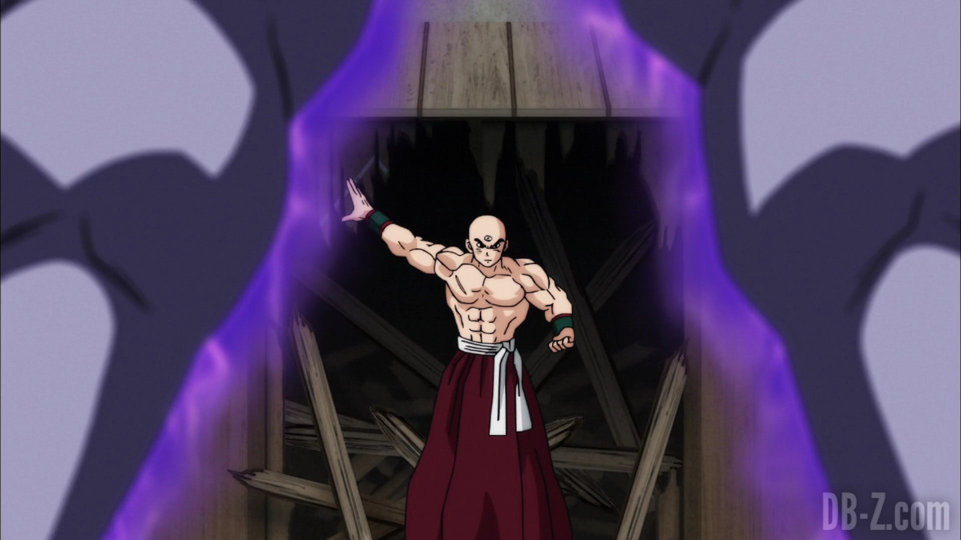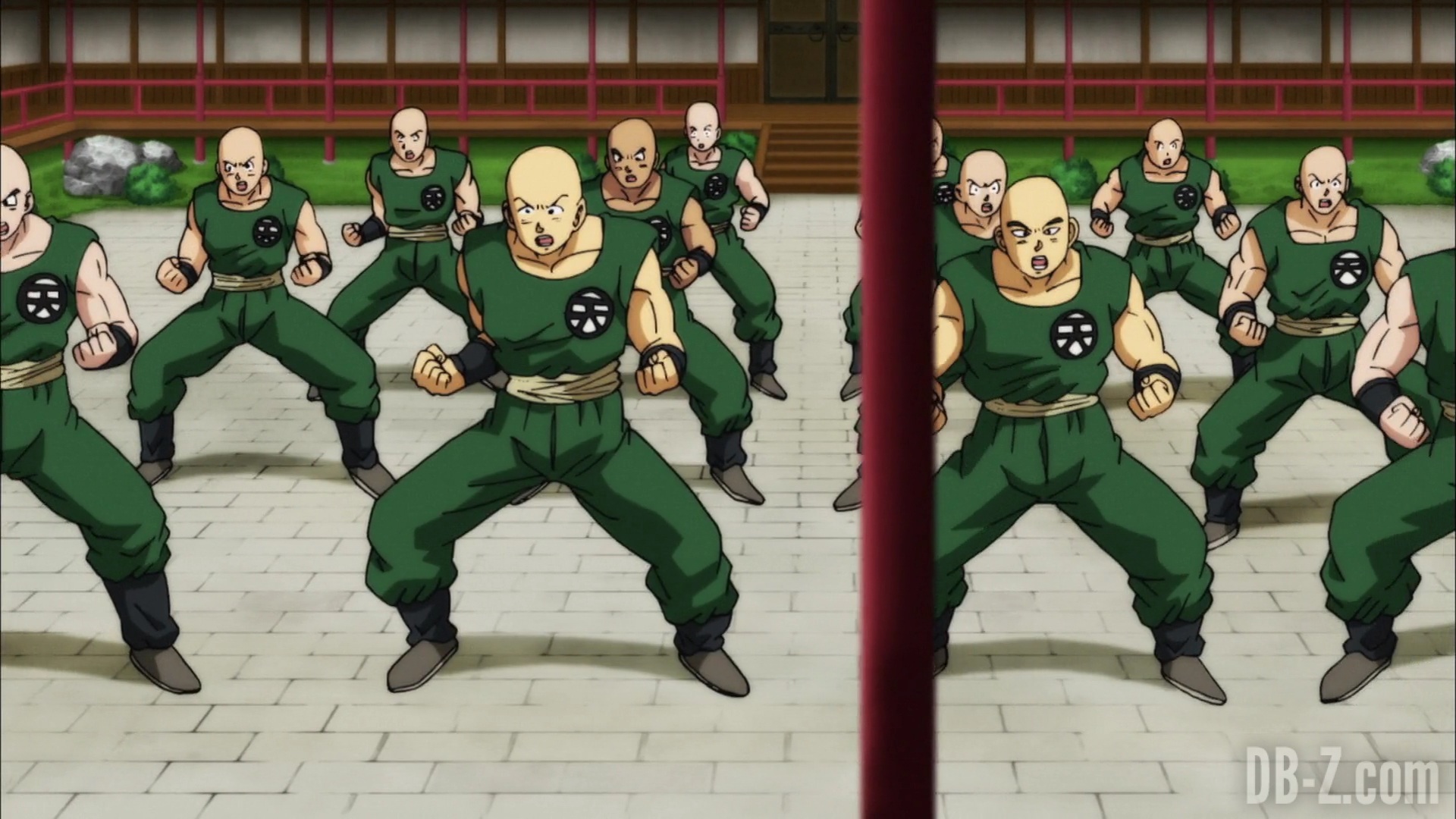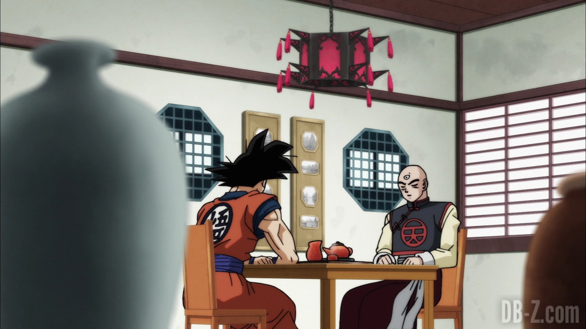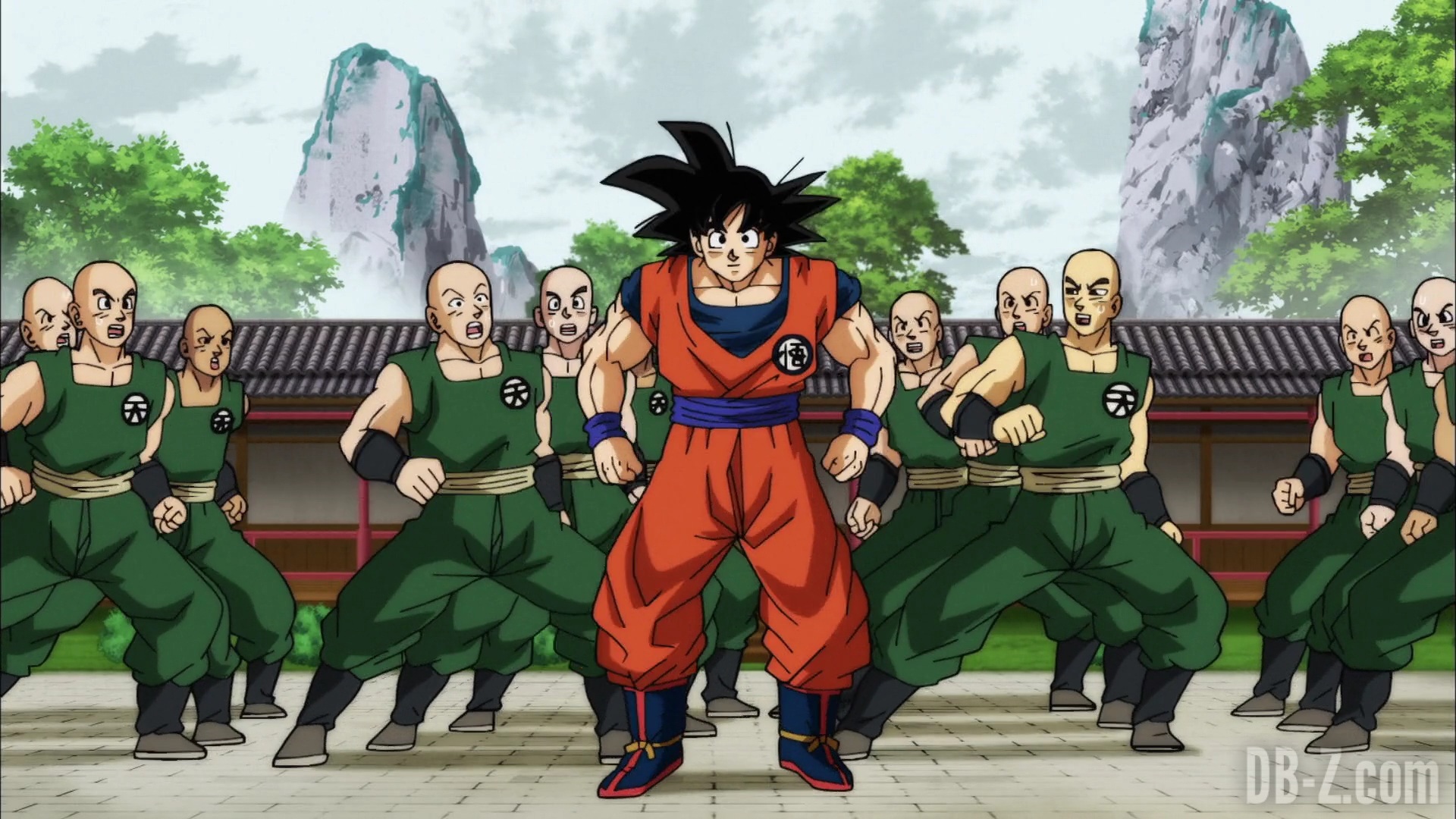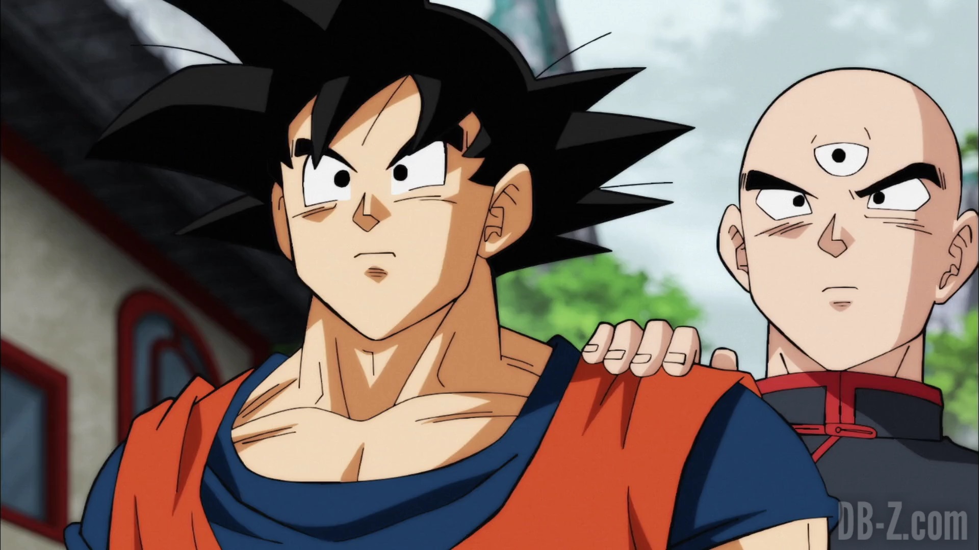 Goku arrive au dojo, et Tenshinhan donne congé à ses étudiants pour la journée afin qu’ils puissent discuter (ils ne se sont pas vus depuis le match contre l’Univers 6). Goku est impressionné par le fait que Tenshinhan a tant d’étudiants, même si Tenshinhan minimise. Pourtant, Goku peut dire que Tenshinhan s’est beaucoup entraîné, et il veut le recruter lui et Roshi pour le Tournoi du pouvoir.
