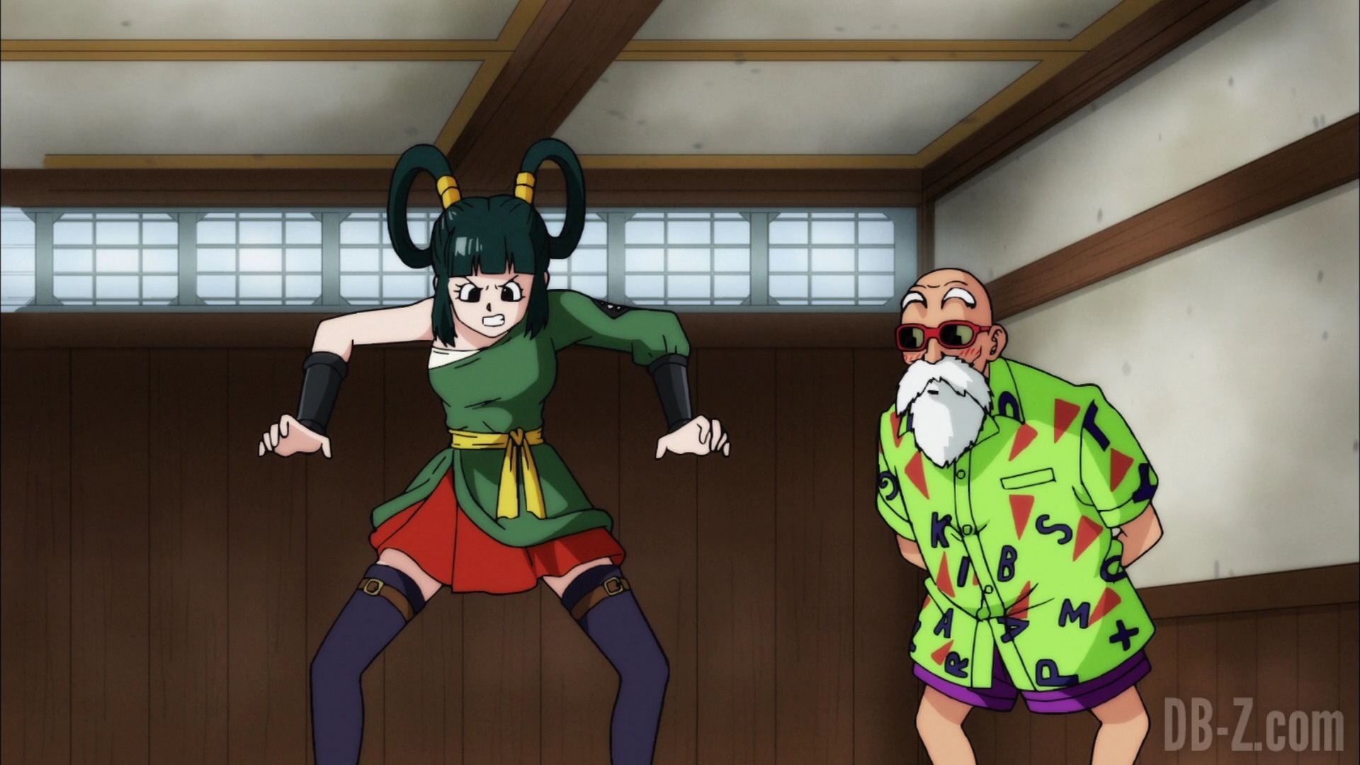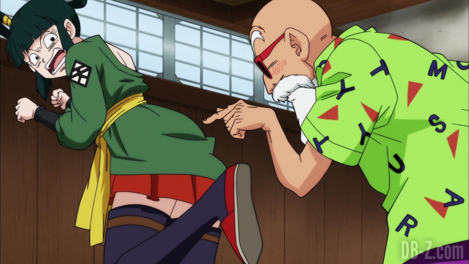 Pendant ce temps, Roshi (Kame Sennin) offre à Yurin un uniforme d’arts martiaux… ce qui se révèle être une mini-jupe. Yurin a déjà catalogué Roshi comme un sale pervers, mais soudain, le vieillard commence à parler de « supprimer son cœur maléfique », et il la poursuit. Yurin prétend ne pas savoir ce qu’il veut dire, mais elle se demande en secret s’il n’aurait pas découvert son véritable objectif. Après avoir semé Roshi, elle sort des talismans en papier.