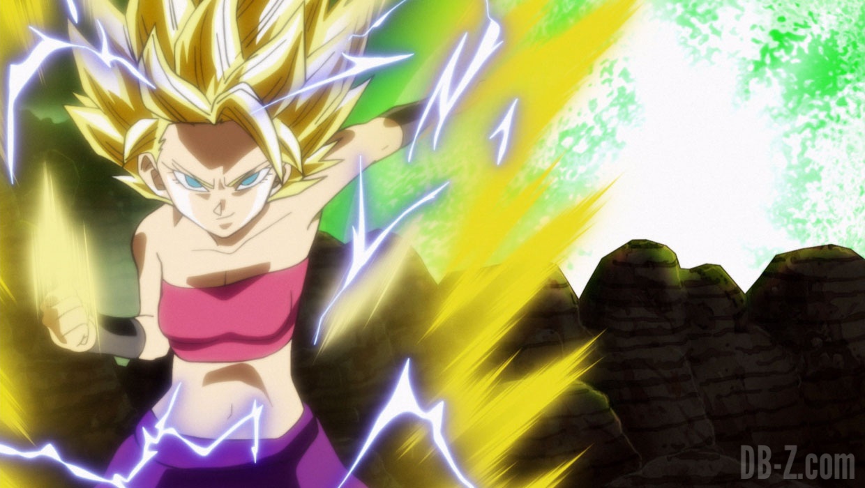 Vous remarquerez que Caulifla est déjà en Super Saiyan 2… En quelques minutes, il faut donc croire que les Saiyan de l’Univers 6 peuvent apprendre à se transformer en Super Saiyan, et en Super Saiyan 2. Concernant Kale, la scène est la même que dans l’opening 2 de Dragon Ball Super : elle se transforme en ce qui semble être le Super Saiyan Légendaire.