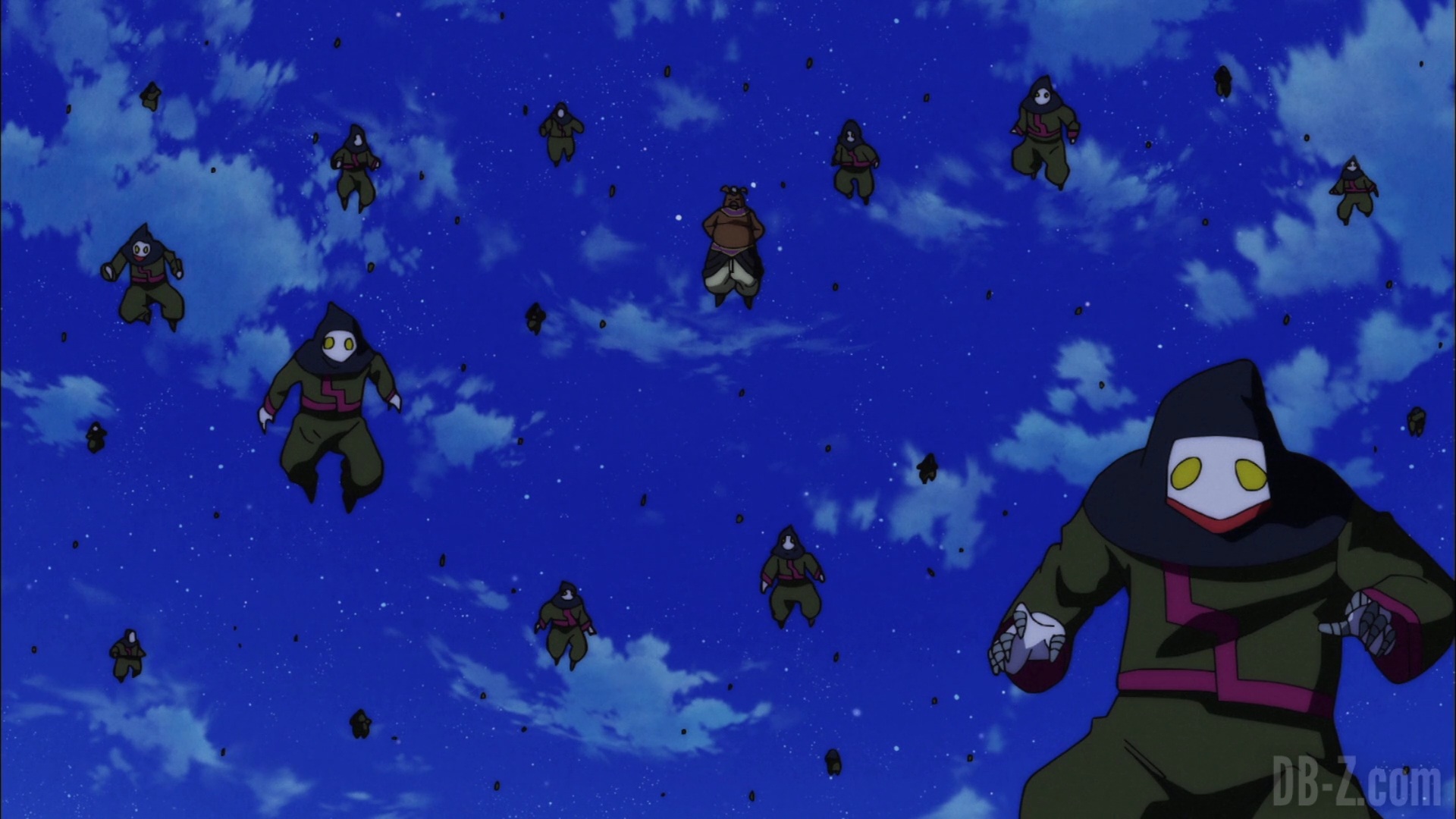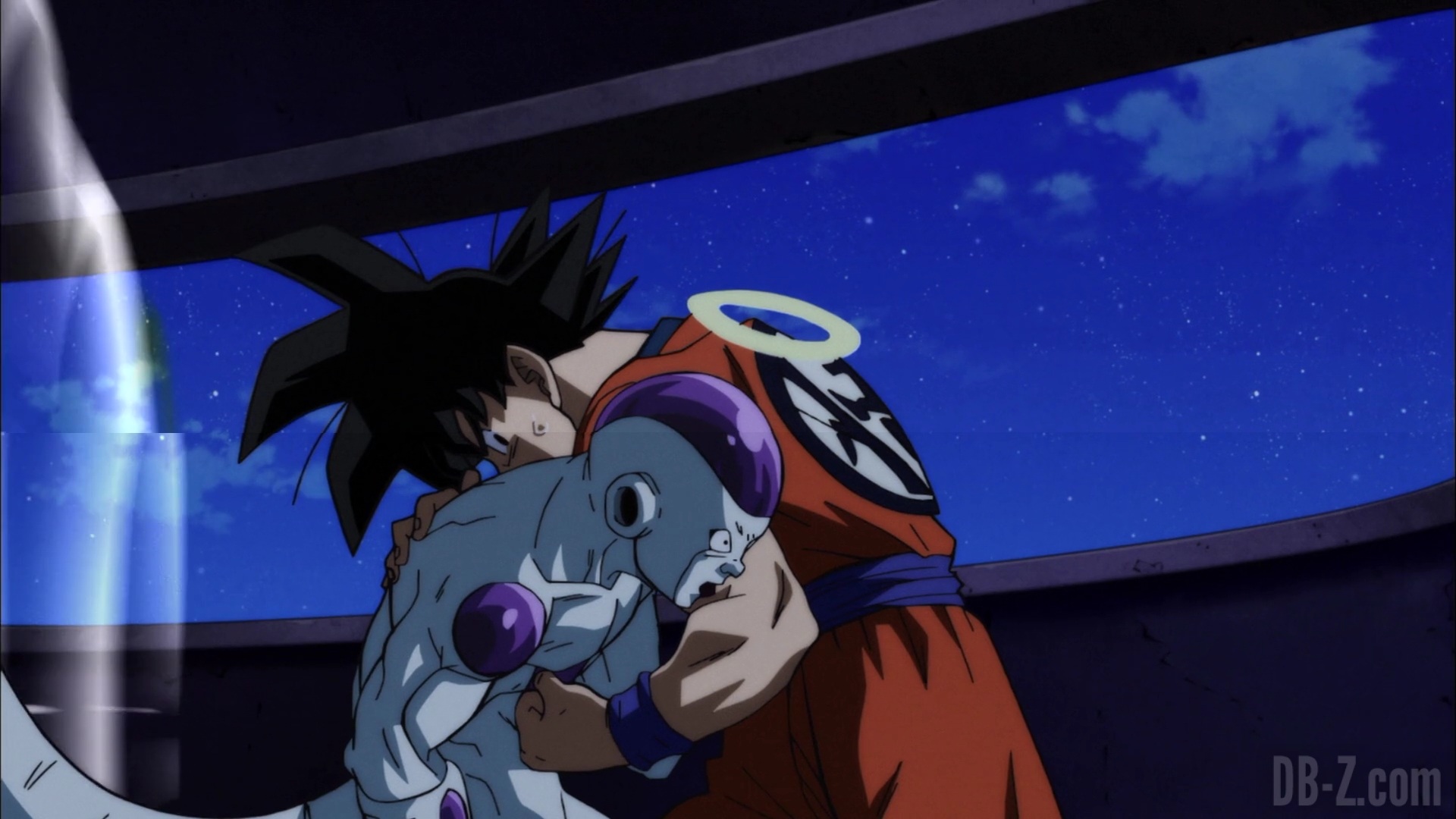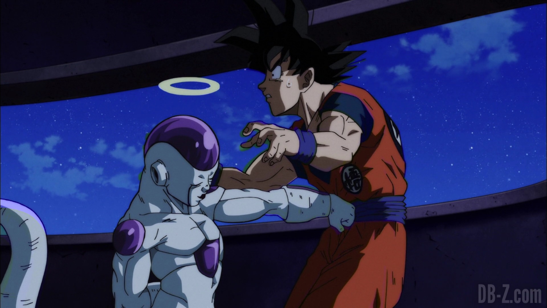 Du côté de Goku, chez Baba la voyante, Freezer arrive. de leur côté aussi, les salutations sont tendus, mais ils sont fins prêts à partir. Sauf que dehors, une armée d’assassins les attend ! Goku dit qu’ils n’ont absolument pas le temps car ils sont déjà très en retard, et un retard = une disqualification = la destruction de leur Univers. Mais Freezer s’en fiche : il se transforme en Golden Freezer et s’apprête à passer à l’attaque !