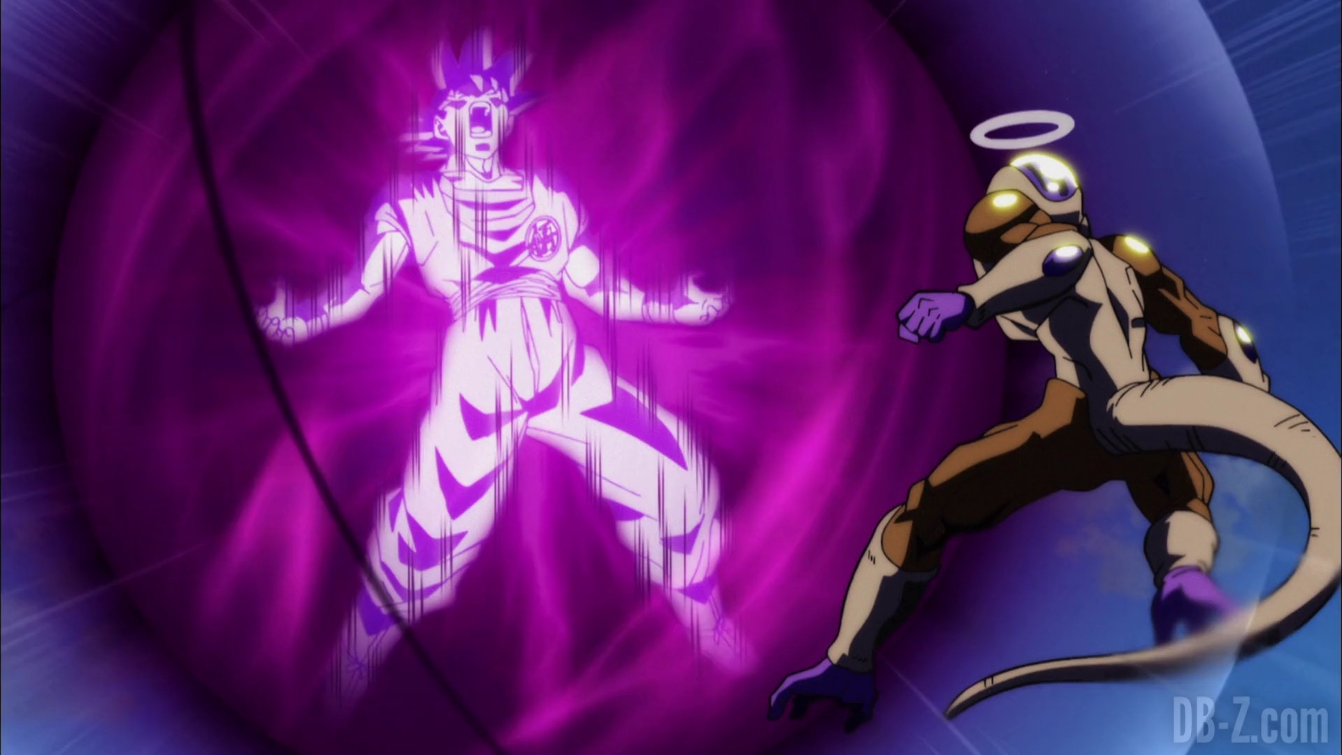 Goku est très impressionné par l’exploit de Freezer, et se demande d’où cette boule d’énergie vient. Freezer pense que cette énergie pure est venu probablement des dieux, donc il y a de fortes chances pour que des Dieu de la création ou de la destruction aient voulu leur bloquer la route. Goku met en garde le reste des assassins que l’Univers 7 ne se cachera pas, et qu’ils régleront les choses de façon propre au tournoi. Mais alors que Goku dit ça, Freezer l’attaque par surprise avec la boule d’énergie de destruction.