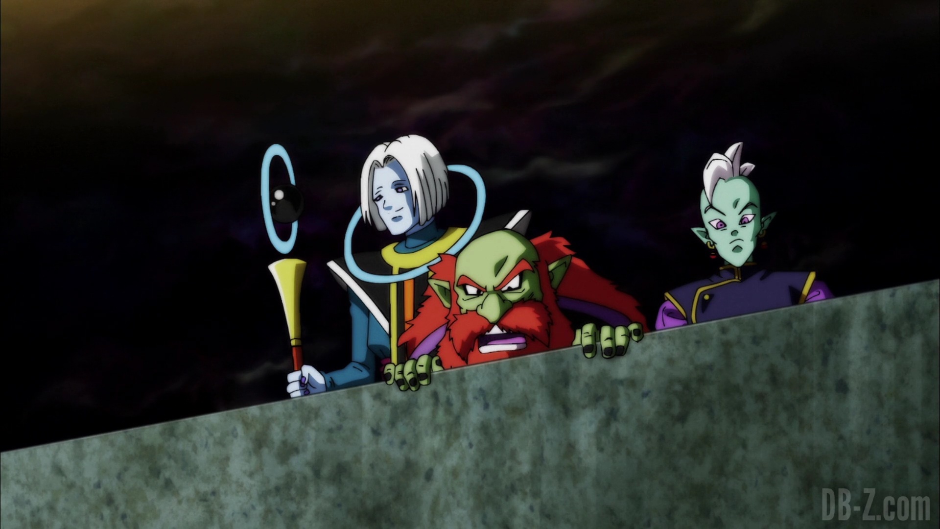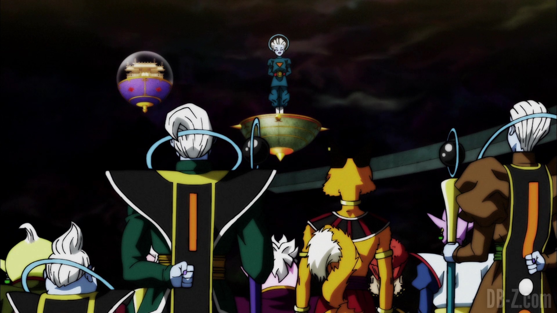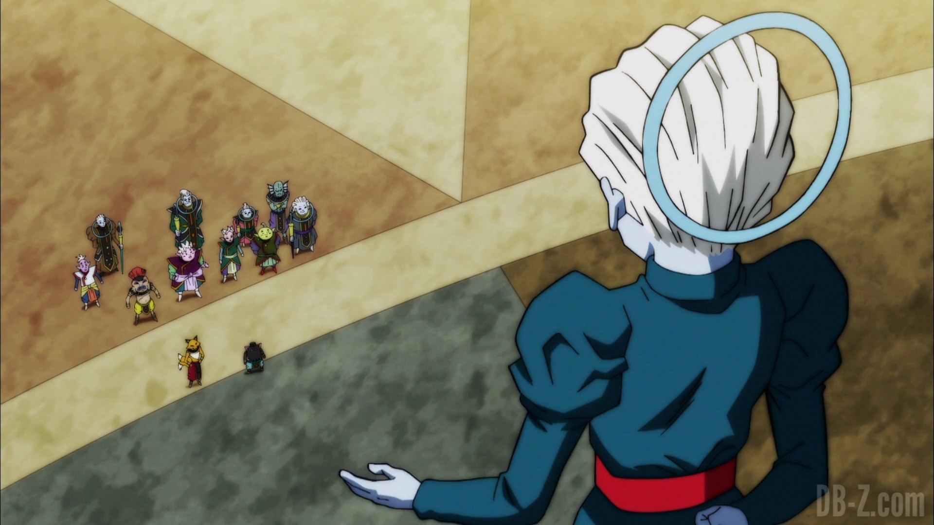 Les dieux des quatre univers exemptés du tournoi du pouvoir arrivent sur l’arène du tournoi fraîchement terminée. Alors qu’ils se demandent si l’arène pourra tenir le choc tout le long du tournoi, le Grand Prêtre les accueille et dit que les Rois Zeno se détendent jusqu’à l’arrivée des concurrents. En réponse aux inquiétudes des dieux, le Grand Prêtre explique que l’arène est fabriquée à partir de métal « Kachi-Katchin », un matériau plus robuste que le métal Katchin de l’Univers 7 (qui avait cassé la Z-Sword de Gohan).