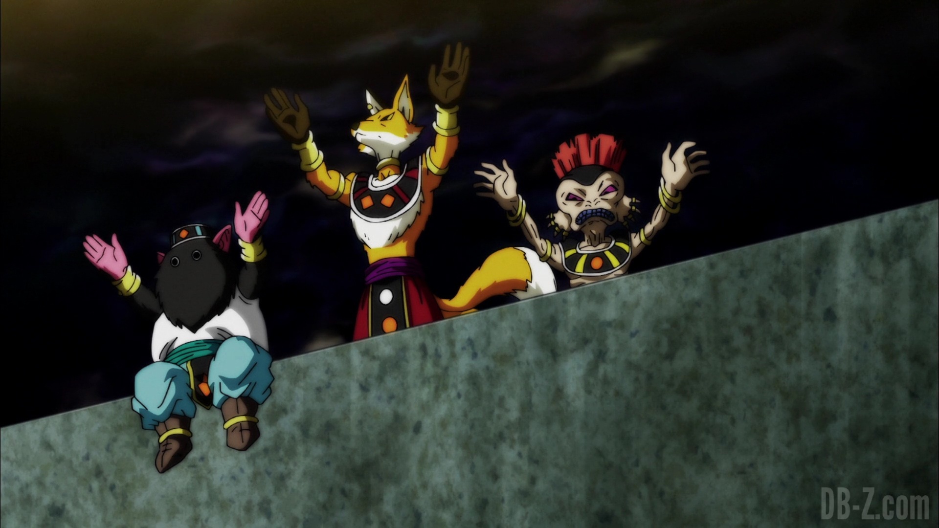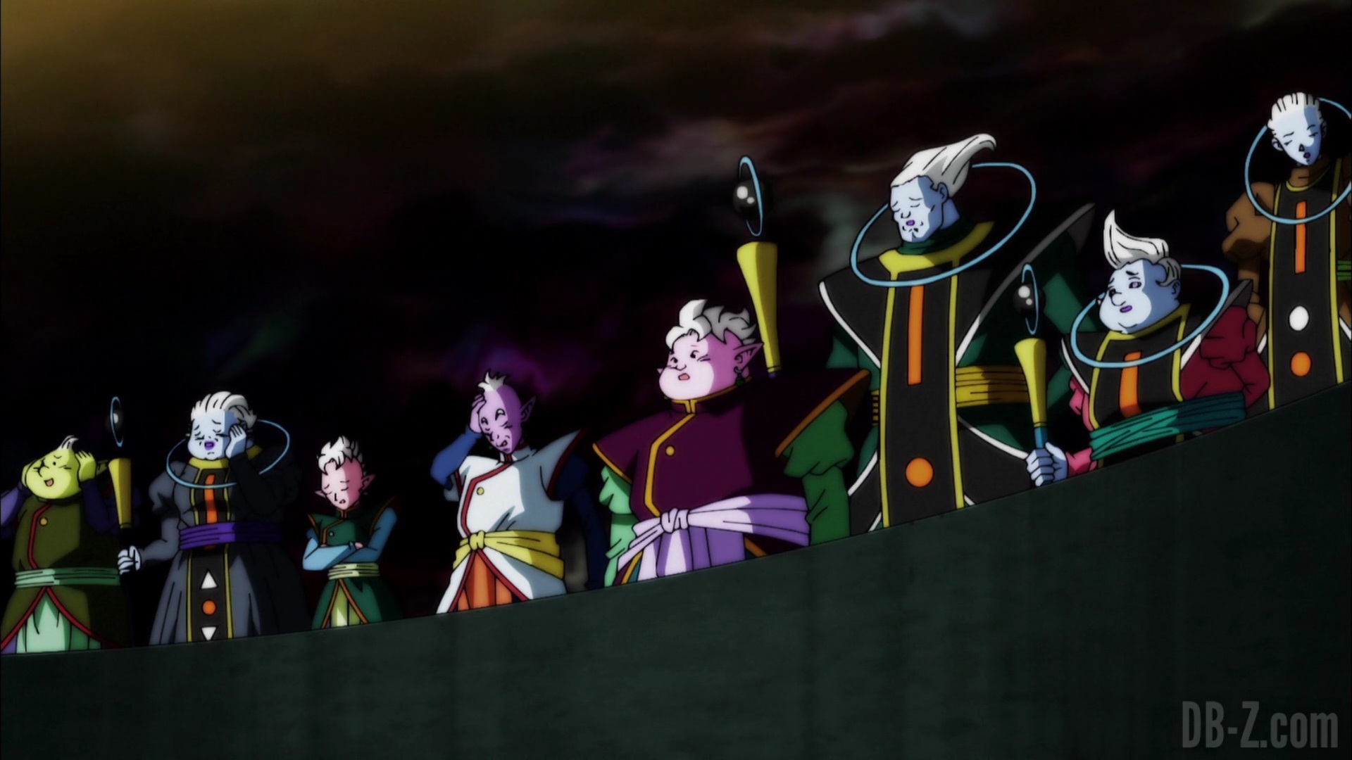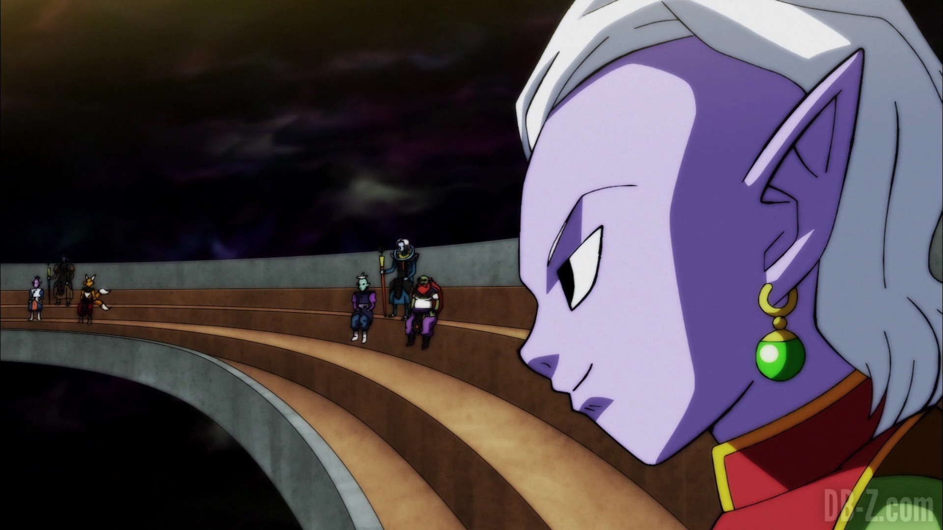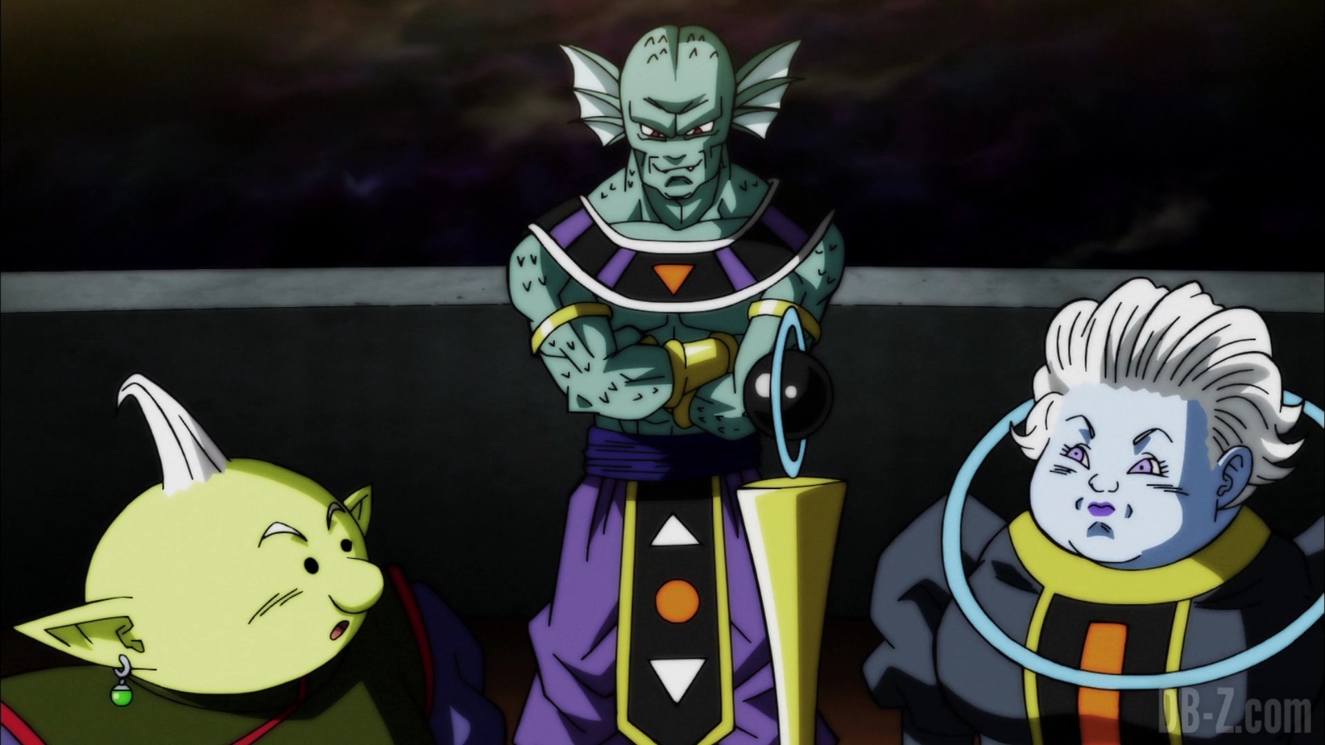 Les dieux des quatre univers exemptés du tournoi du pouvoir arrivent sur l’arène du tournoi fraîchement terminée. Alors qu’ils se demandent si l’arène pourra tenir le choc tout le long du tournoi, le Grand Prêtre les accueille et dit que les Rois Zeno se détendent jusqu’à l’arrivée des concurrents. En réponse aux inquiétudes des dieux, le Grand Prêtre explique que l’arène est fabriquée à partir de métal « Kachi-Katchin », un matériau plus robuste que le métal Katchin de l’Univers 7 (qui avait cassé la Z-Sword de Gohan).