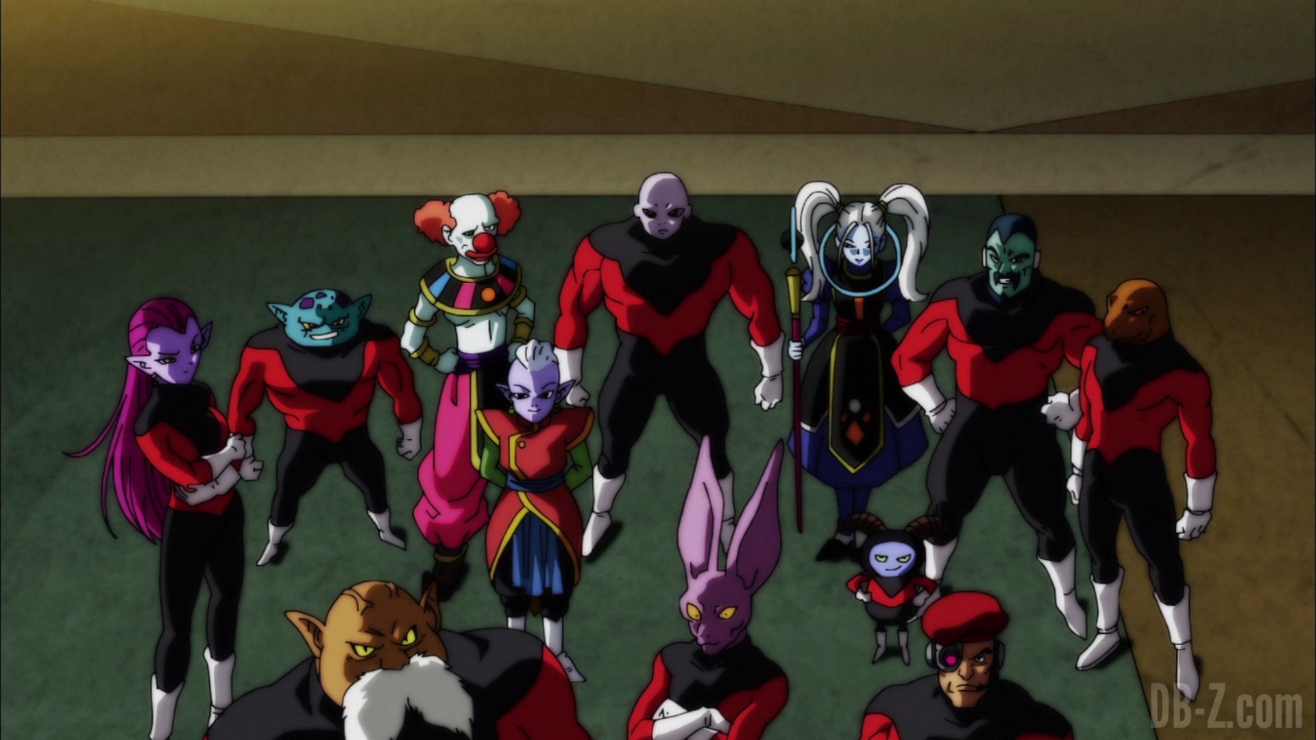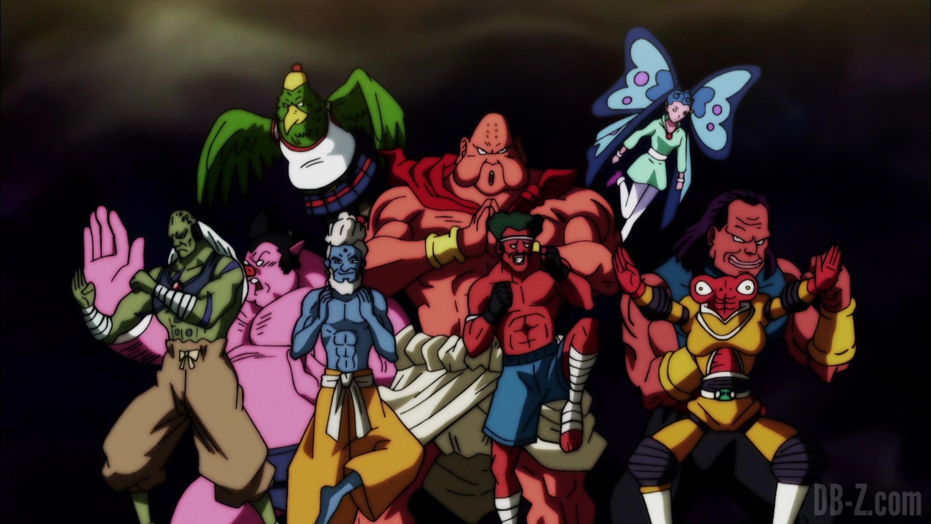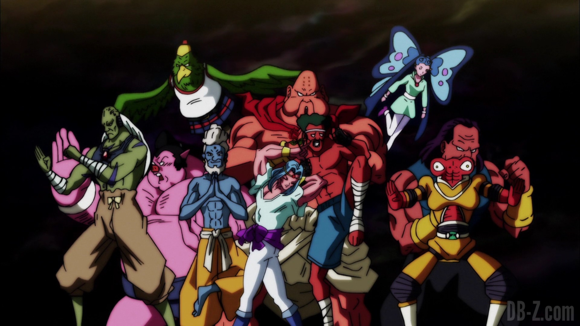 Lorsque les réparations de l’arène sont terminées, le Grand Prêtre présente les équipes. D’abord, l’équipe de l’Univers 2, avec la plus forte proportion de combattantes féminines, et un Yardrat, comme ceux qui lui ont appris la téléportation. Ensuite, l’équipe de l’Univers 3, composée de plusieurs guerriers cybernétiques. L’équipe de l’Univers 4 semble n’avoir que huit membres, mais Tenshinhan peut sensiblement ressentir les deux autres. L’équipe de l’Univers 6 présente les cinq membres du dernier tournoi, plus Caulifla, Kale, un homme sanglier et deux personnages sombres. L’équipe de l’Univers 7 on la connaît, et l’équipe de l’Univers 9 a le « Trio de Dangers » et sept membres supplémentaires. L’équipe de l’Univers 10 dispose d’un tas de gars rusés, plus des combattants volants (oiseaux / papillons). Et l’équipe de l’Univers 11 se compose entièrement de Pride Troopers : Toppo, Jiren, Dyspo et le reste de l’équipe.
