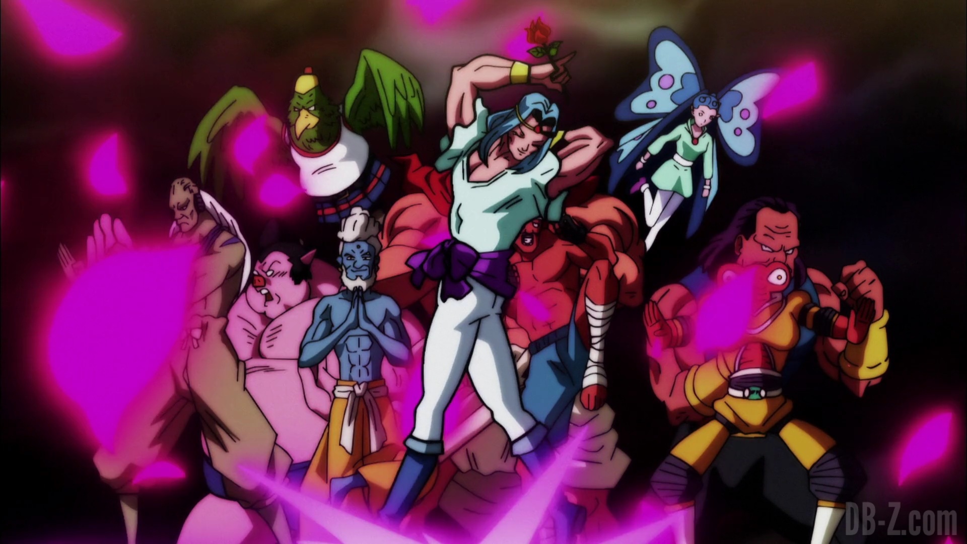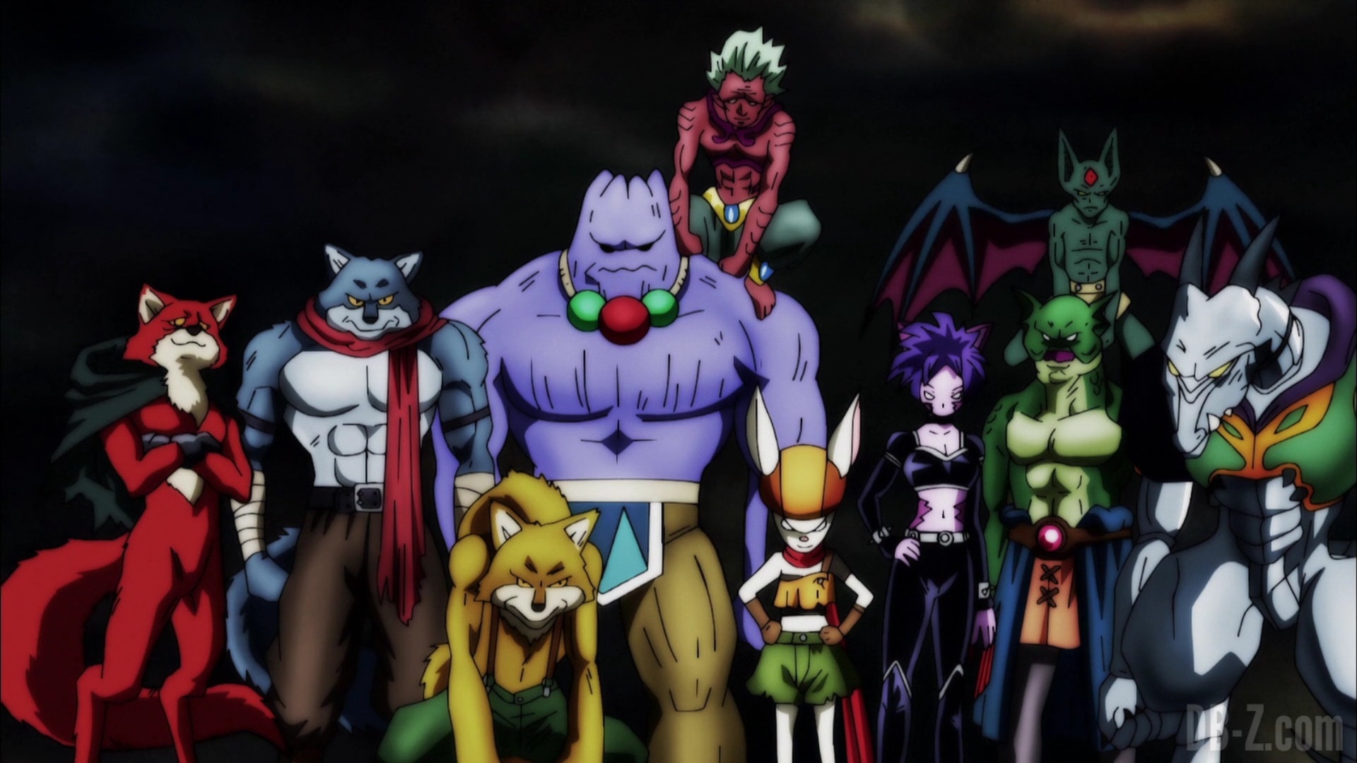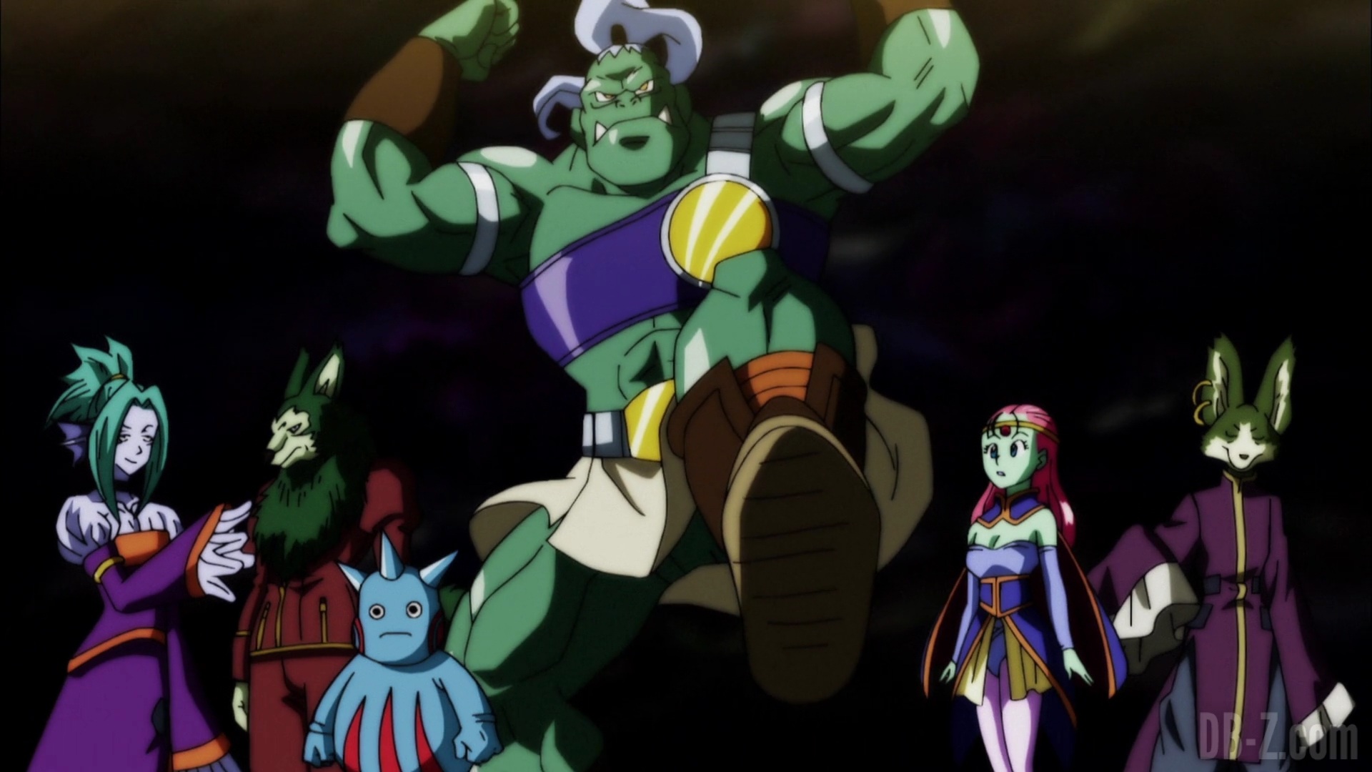 Lorsque les réparations de l’arène sont terminées, le Grand Prêtre présente les équipes. D’abord, l’équipe de l’Univers 2, avec la plus forte proportion de combattantes féminines, et un Yardrat, comme ceux qui lui ont appris la téléportation. Ensuite, l’équipe de l’Univers 3, composée de plusieurs guerriers cybernétiques. L’équipe de l’Univers 4 semble n’avoir que huit membres, mais Tenshinhan peut sensiblement ressentir les deux autres. L’équipe de l’Univers 6 présente les cinq membres du dernier tournoi, plus Caulifla, Kale, un homme sanglier et deux personnages sombres. L’équipe de l’Univers 7 on la connaît, et l’équipe de l’Univers 9 a le « Trio de Dangers » et sept membres supplémentaires. L’équipe de l’Univers 10 dispose d’un tas de gars rusés, plus des combattants volants (oiseaux / papillons). Et l’équipe de l’Univers 11 se compose entièrement de Pride Troopers : Toppo, Jiren, Dyspo et le reste de l’équipe.
