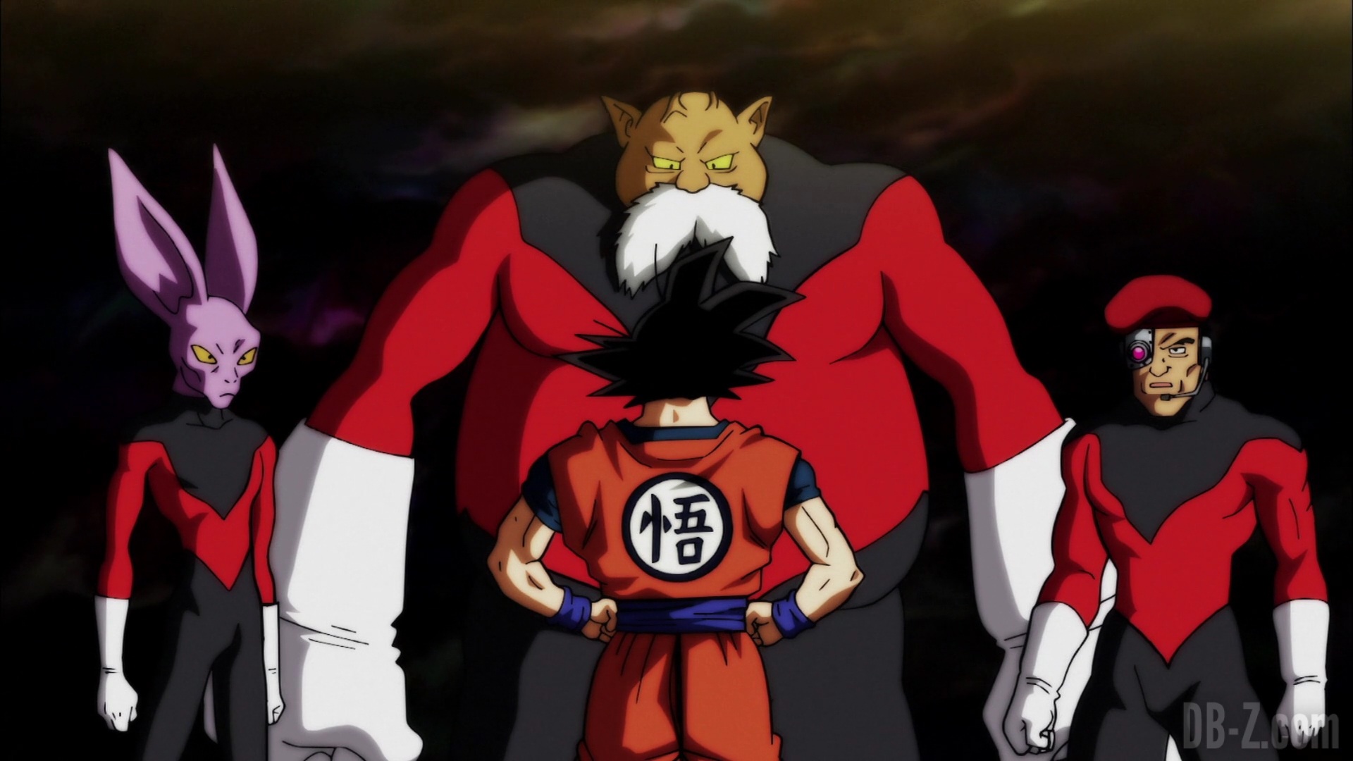 Pendant ce temps, l’équipe de l’Univers 11 arrive, et Goku et Vegeta sont choqués par leur ki. Caulifla semble moins impressionnée, et elle s’étonne même que les Saiyans de l’Univers 7 le soient autant. Goku se précipite pour saluer Toppo et dit qu’ils peuvent terminer leur match de la dernière fois, mais Toppo ne s’intéresse à aucune rivalité personnelle. Il est là pour sauver son univers. Goku voit Jiren, mais Jiren est encore moins amical : il semble se déplacer instantanément derrière le dos de Goku et lui dit froidement de se « tirer ».