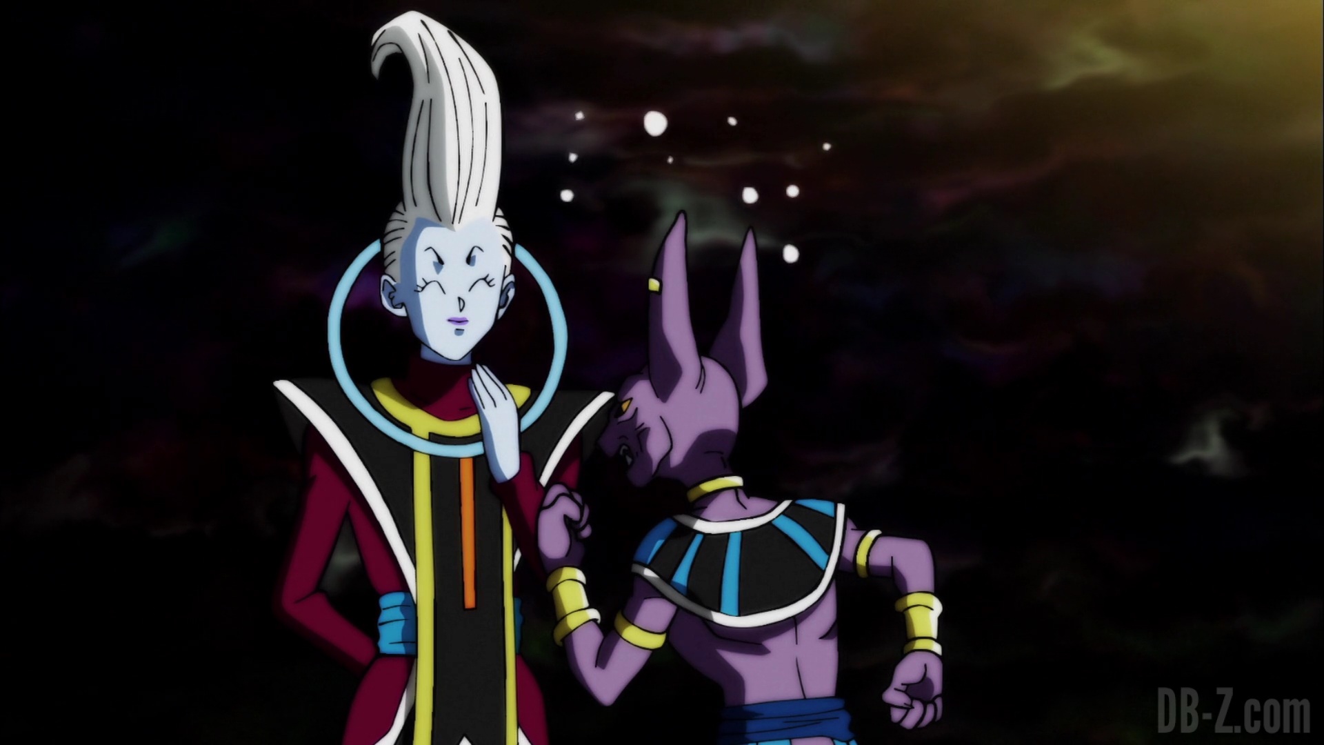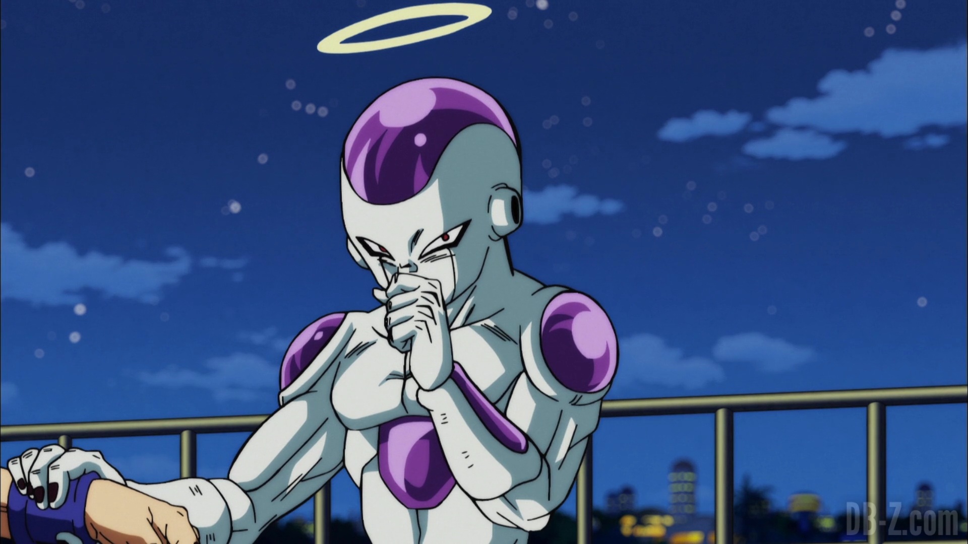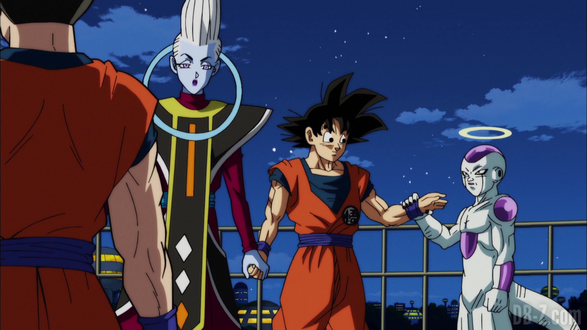 Whis annonce qu’il est temps de partir, et que pour se téléporter vers l’arène, tout le monde devra se tenir la main. Vegeta refuse de prendre la main de Freezer, mais Beerus entre et joue l’intermédiaire en prenant la main de Freezer d’un côté, et celle de Vegeta de l’autre. Whis contacte le Grand Prêtre qui téléporte l’équipe dans le Monde du Vide. En voyant l’équipe partir, Yamcha dit que le sort de la Terre et de tout son univers est désormais entre leurs mains.