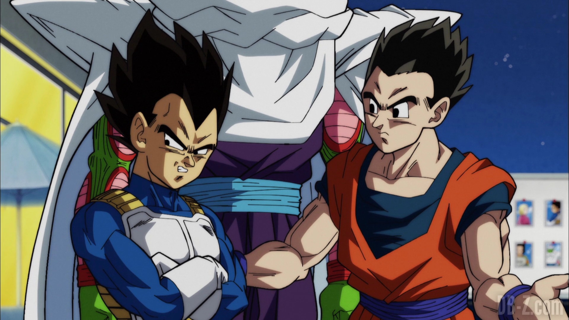 Shin veut discuter de la stratégie, mais Vegeta pense que le plus simple c’est d’éliminer ceux qui auront l’air le plus fort dès le début. Freezer est d’accord avec Vegeta, mais Gohan insiste sur l’importance du travail d’équipe, et Piccolo souligne que s’ils perdent, cela signifiera la fin de leur univers… y compris Trunks et Bra. Vegeta devient un peu plus coopératif, mais n’aime pas l’idée de Shin de se concentrer sur les ennemis en combattant à 2 contre 1, ou à 3 contre 2, etc… Goku pense également que c’est sale comme méthode. Les Saiyans comme Goku et Vegeta veulent donner le meilleur d’eux-même en combat singulier, et Gohan et Piccolo se rendent compte qu’il auront du boulot pour promouvoir le travail d’équipe.