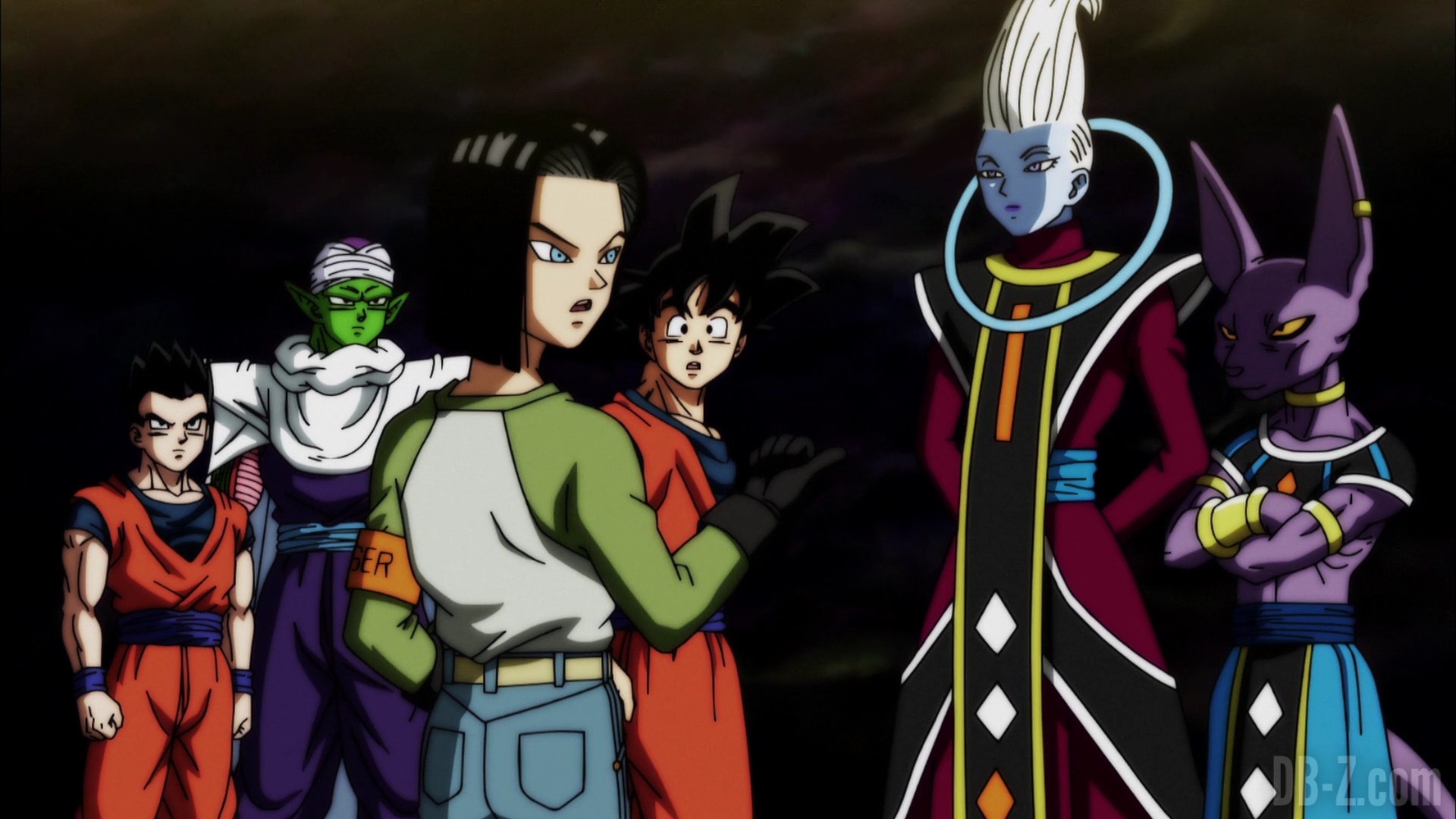 L’équipe arrive dans Monde du Vide et trouvent Liquiir et les autres Dieux qui portent la touche finale à leur travail de réparation de l’arène. Les équipes des autres univers commencent à arriver, et Beerus remarque qu’ils ne se tiennent pas les mains. En fait, se tenir la main n’était pas nécessaire pour se téléporter, c’était simplement que Whis voulait tenter de construire des liens dans son équipe (bien que cela ait failli foirer). C-18 remarque comment que l’arène flotte dans le vide (d’où le nom), et Whis explique que les concurrents ne peuvent pas utiliser de techniques de vol comme le « Buku Jutsu ». Cependant, les concurrents avec des ailes sont toujours autorisés à voler, tout comme les non-participants au tournoi. En outre, chaque concurrent éprouvera toujours la même gravité que sur sa planète native, donc pas d’inégalité à ce niveau.