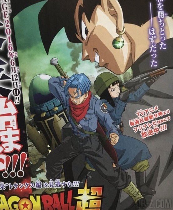 Voici une première image de la promo de L’arc Trunks du Futur dans Dragon Ball Super et du nouvel ennemi annoncé par Akira Toriyama : Black Goku ! Comme les rumeurs l’annonçaient, cette affiche de promotion de l’arc de Trunks du Futur dans Dragon Ball Super nous montre également que Mai, du gang de Pilaf, aura aussi un rôle important dans la série. L’arc de Trunks du Futur débutera dans l’épisode 47 de Dragon Ball Super, diffusé le dimanche 12 juin 2016 à 09h00 au Japon sur Fuji TV.