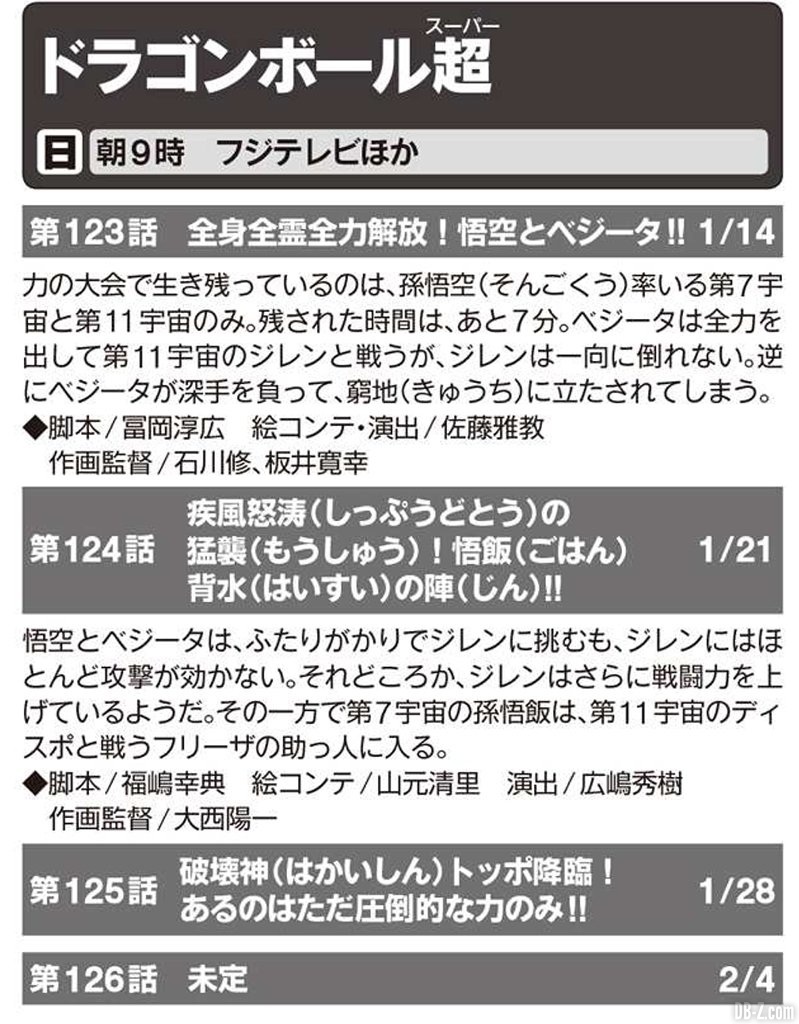 Voici de nouveaux titres et résumés pour les épisodes 123, 124, 125, et 126 de Dragon Ball Super !