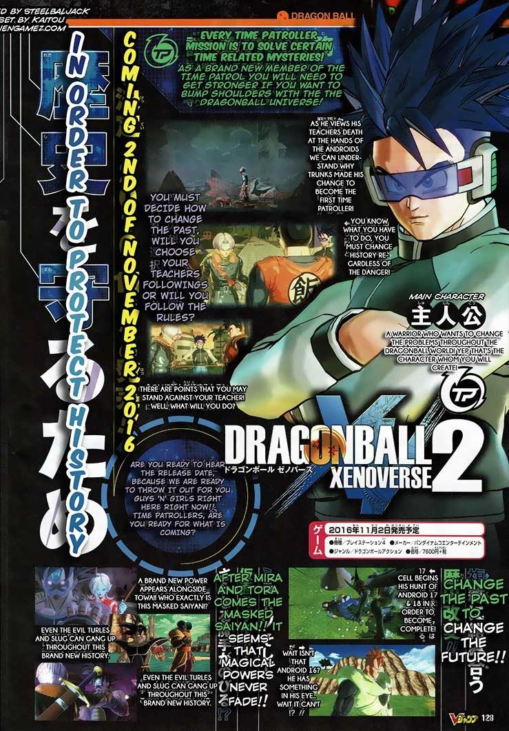 Le V-Jump du mois est sorti hier au Japon, et Dragon Ball Xenoverse 2 se dévoile toujours plus avec ce scan que nous vous avions traduit hier. Il nous dévoilait des mini-jeux et d’autres contenus supplémentaires, et cette fois, ShonenGamez a pu se procurer un scan de bien meilleure qualité, et qui révèle davantage d’informations que le site a traduit en anglais.