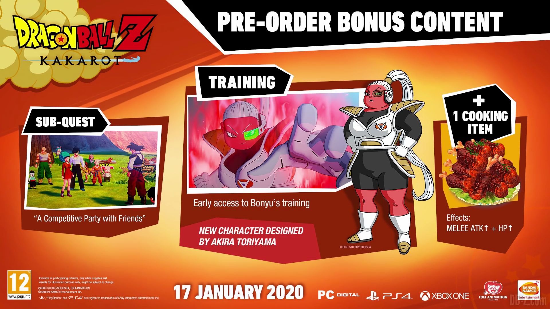 Dragon Ball Z Kakarot est un jeu vidéo de type Action-RPG développé par CyberConnect2. C’est l’équipe derrière la série des Naruto Shippuden Ultimate Ninja Storm. Il s’agit d’un jeu mêlant exploration, quêtes, et combats. DBZ Kakarot sortira le 16 janvier 2020 au Japon, et le 17 janvier dans le monde entier. Il sortira sur PS4, Xbox One, et PC.