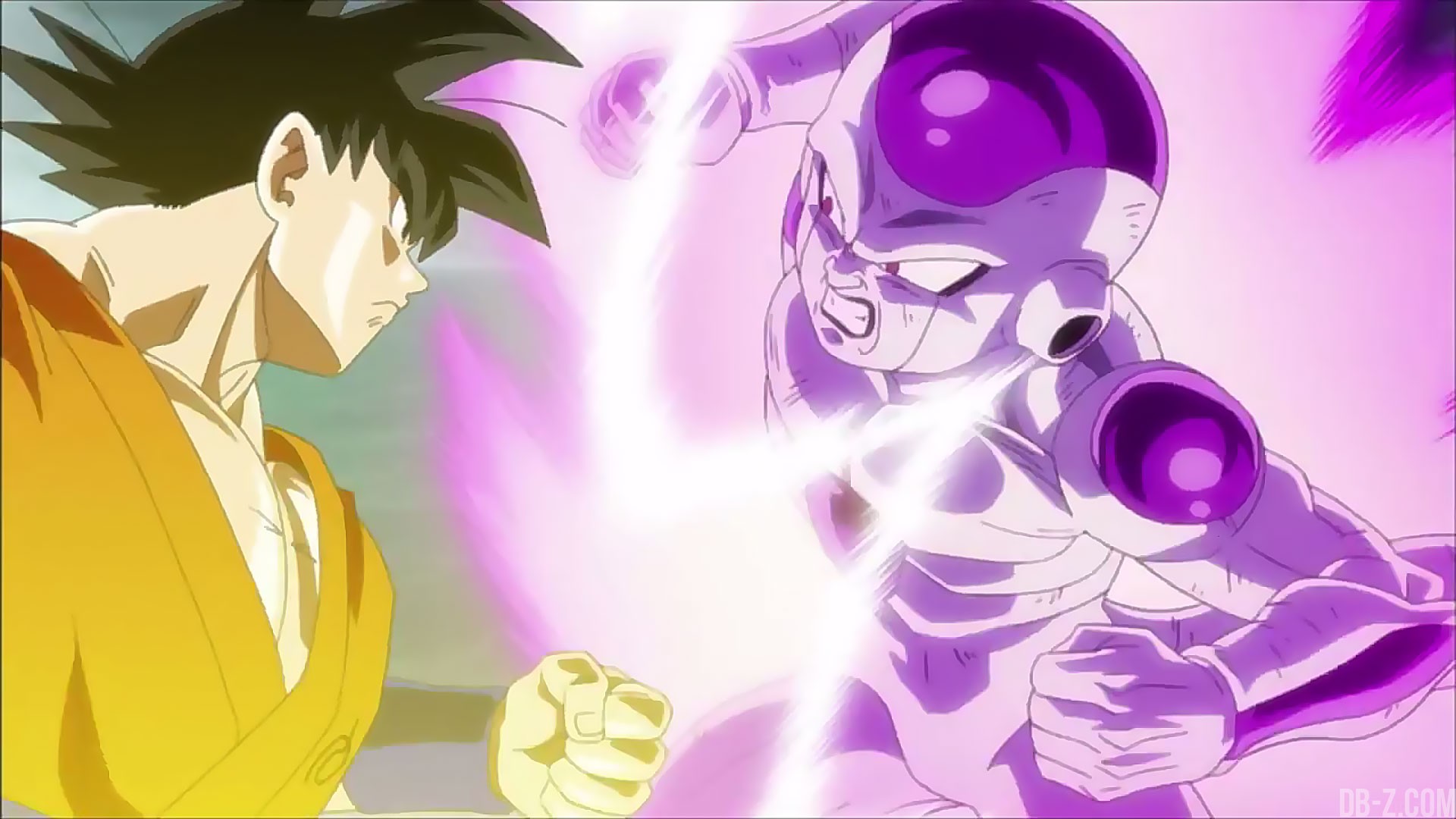 La bataille tournant en sa défaveur, Goku complimente les progrès fantastiques de Freezer, qui est arrivé à de tels résultats alors que lui a mis un temps fou pour devenir aussi fort. Freezer semble ravi d’entendre ce compliment de la part de son adversaire, tout en précisant que ça ne le sauvera pas. C’est alors que le tyran remarque la présence de Beerus, qui se plaint que Freezer va mettre de la crasse sur toute la nourriture s’il ne va pas se battre ailleurs.