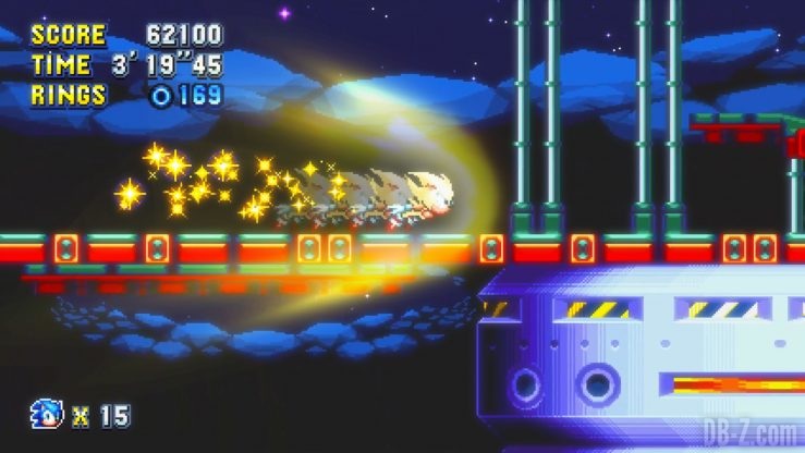 Il existe même une forme au-delà du Super Sonic : il s’agit du Hyper Sonic. Sonic est blanc avec une aura multicolore. Celui-ci était déblocable en attrapant 14 émeraudes du chaos lorsque vous aviez combiné vos cartouches de Sonic 3 et de Sonic & Knuckles sur Megadrive.