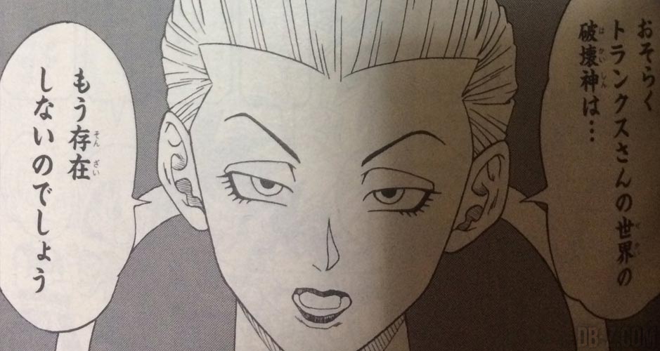 Trunks en Super Saiyan se bat contre Goku Black. Il s’enfuit dans le présent de Goku et ses amis, et affronter Goku pour jauger son niveau de puissance. Tout se passe comme dans l’animé, sauf qu’on apprend une nouvelle information : Les Kaioshins et les Dieux de la Destruction sont un ensemble, un set de deux individus : Si l’un meurt, l’autre meurt aussi ! Quand Trunks raconte que le Kaioshin de son époque est mort sous les coups de Dabla, Whis répond alors que le Dieu de la Destruction du monde de Trunks est forcément mort également.