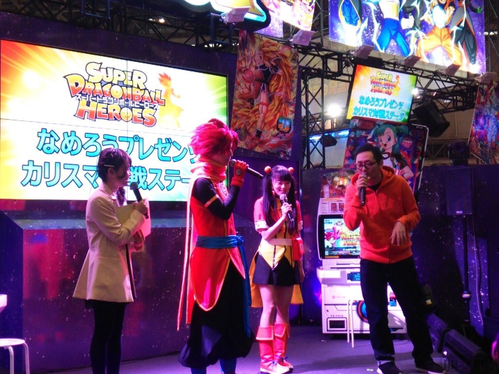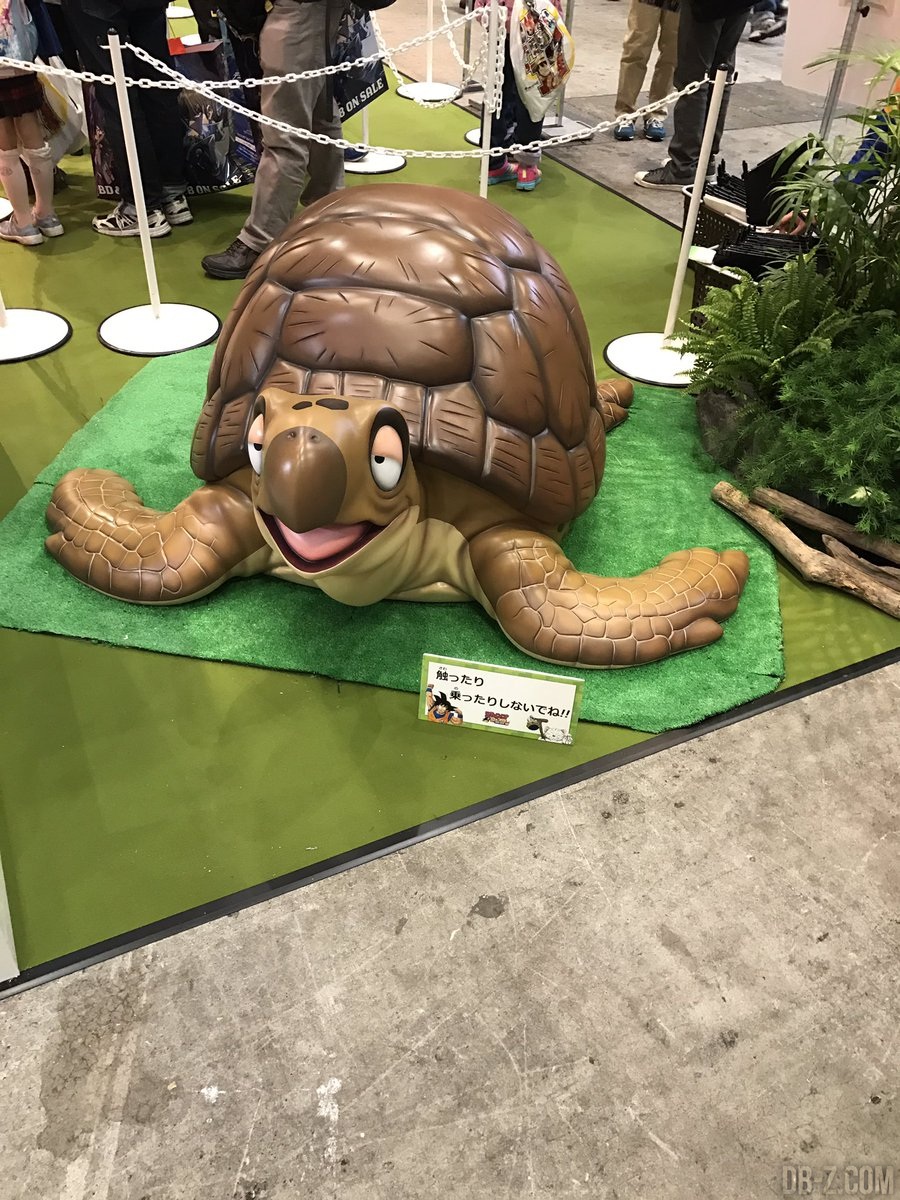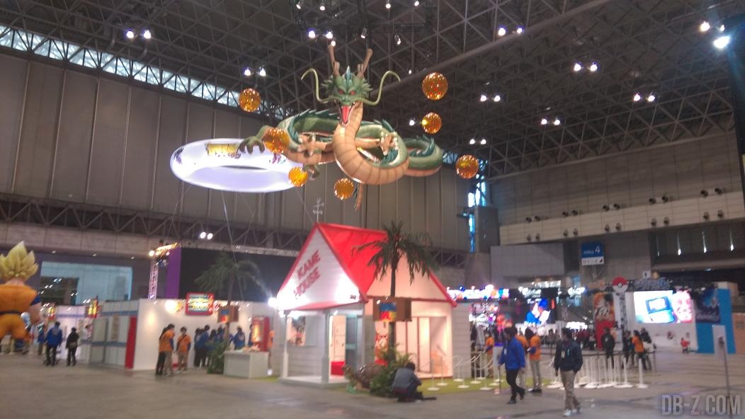 Le stand Dragon Ball est bien en place, et les visiteurs peuvent déjà profiter de pas mal d’attractions inédites, à savoir : une reproduction géante de Kame House qu’il est possible de visiter, un Goku et un Shenron géant gonflable, la présence de Maître Karin (en vrai !), et une nouvelle machine de Capsule Corporation baptisée la « C-Motion Wheel« , que les visiteurs peuvent d’ailleurs essayer. Il y a également un jeu en fil rouge : « Apparais Shenron, le rallye de stickers Dragon Ball !! », qui permet de gagner un calendrier Dragon Ball 2017 si vous réussissez à remplir votre fiche avec 7 stickers représentant les 7 Dragon Balls.