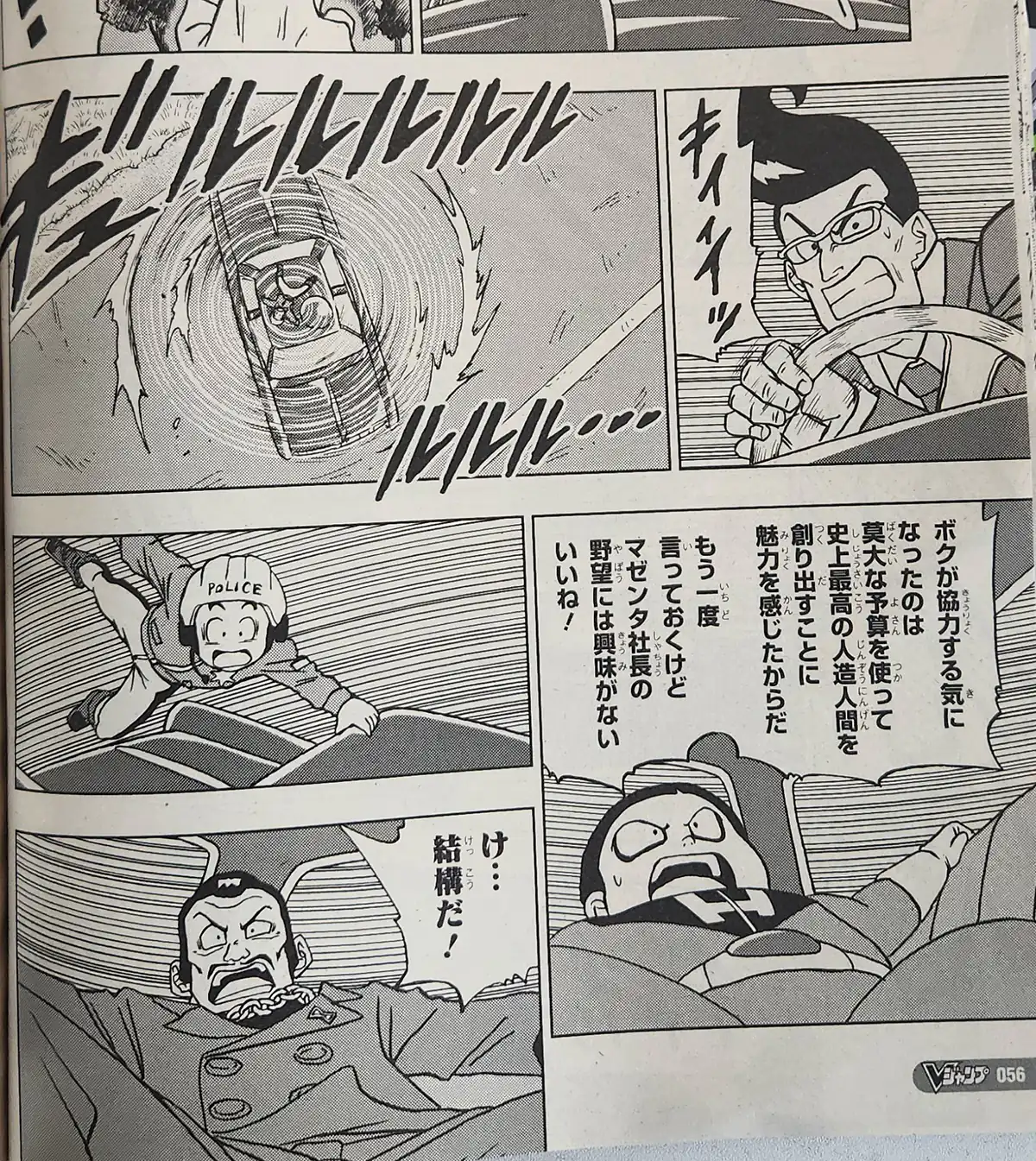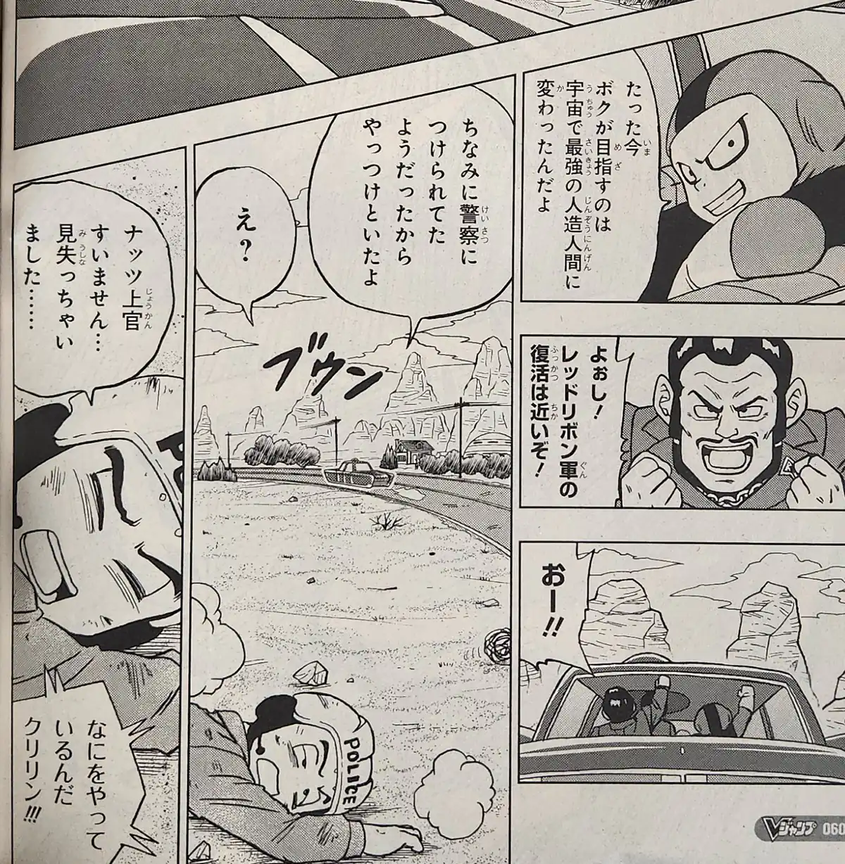 Ce qui pourrait surprendre à la vue de ces premières images, c’est que ce 91ème chapitre de 40 pages semble aller assez loin dans l’intrigue du film. Mais en réalité, il s’agit effectivement du début, où le Dr Hedo sort de prison pour aider l’armée du Ruban Rouge à dominer le monde.