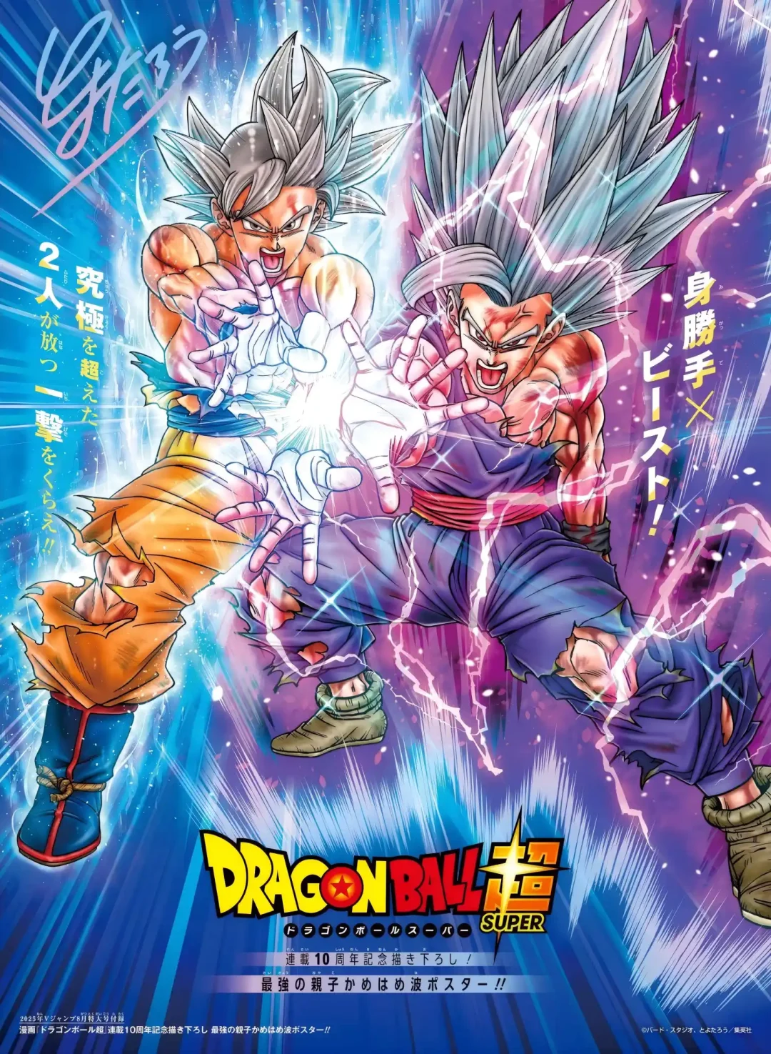 Dans ce contexte, la couverture s’inscrit davantage dans une logique commémorative et promotionnelle, notamment autour du 10e anniversaire de Dragon Ball Super dans le V-Jump, plutôt que dans une annonce éditoriale.