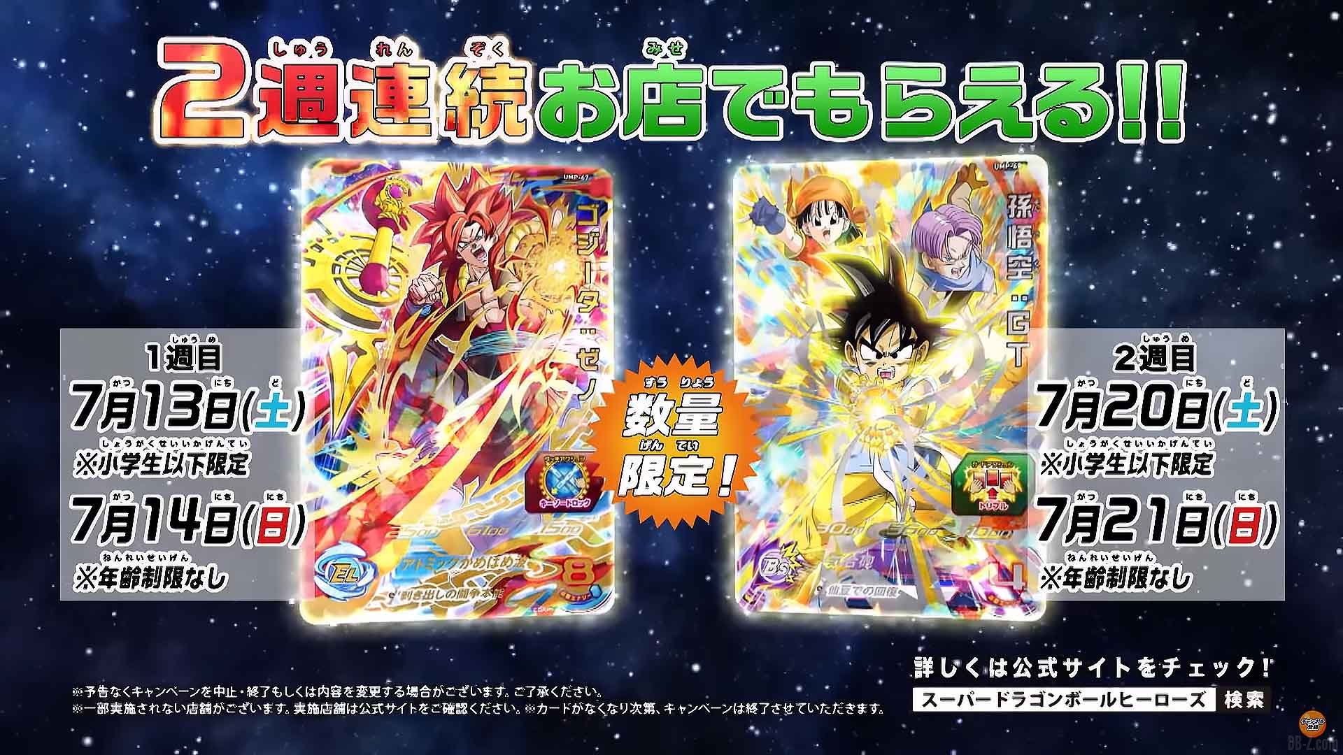 Notez aussi que deux cartes promotionnelles supplémentaires seront à récupérer en magasin ! Il s’agit des cartes de Gogeta Xeno avec la Key Sword Lock, et de Goku GT. Les voici ci-dessous en images.