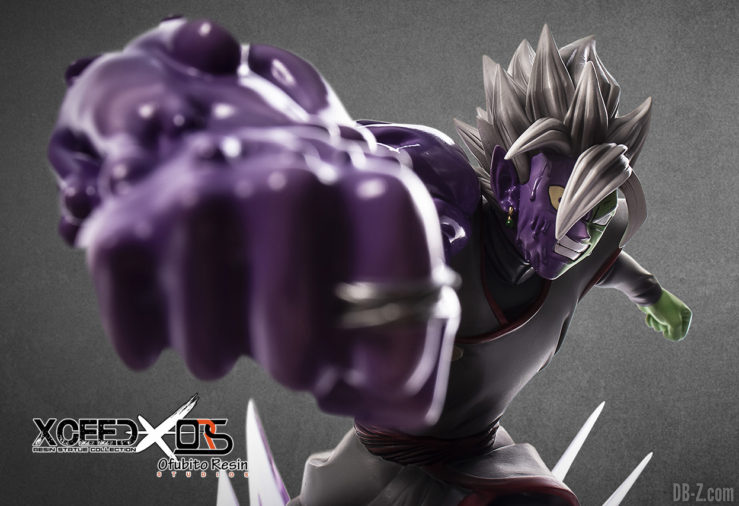 Cette figurine est un projet de collaboration entre deux grands acteurs de statues Dragon Ball « fan-arts »: XCEED et Ofubito Resin Studios. Remarquez qu’elle arrive en deux parties : l’une avec Vegetto Blue, et l’autre avec Zamasu.