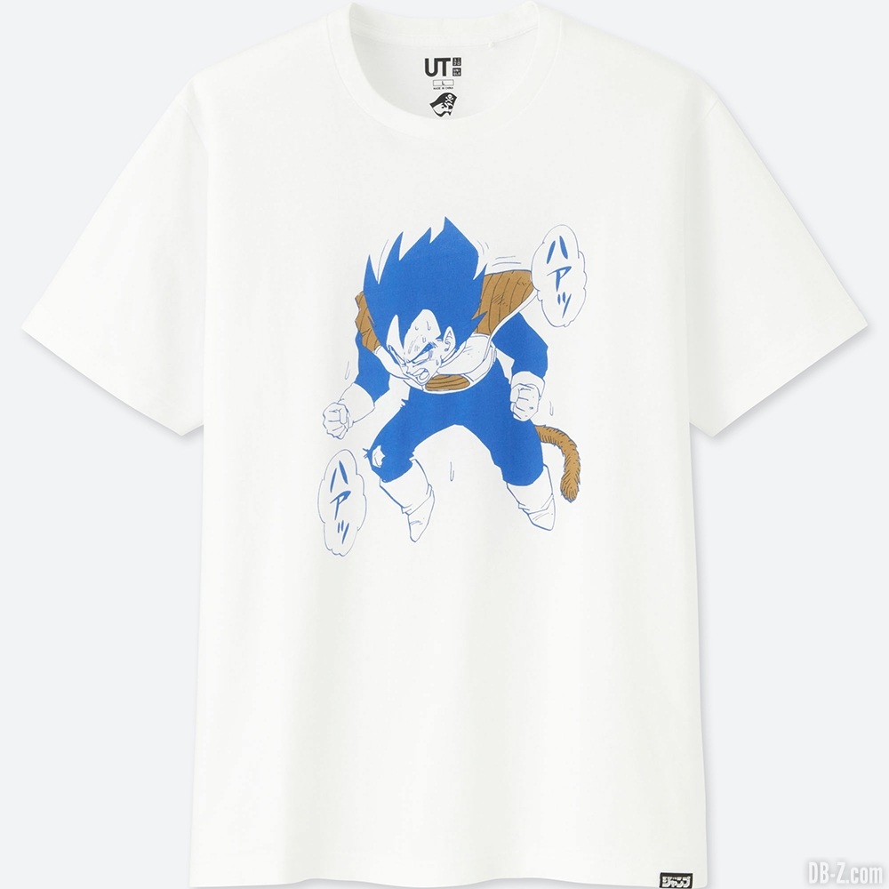 Les cinq t-shirts Dragon Ball ci-dessous seront uniquement disponibles en taille adulte, pour des tailles variant de XS à XXXXL (4XL). Ils seront commercialisés au Japon au prix de 990 ¥ (HT), soit 7,50 € (HT). Avec la TVA Japonaise qui est à 8%, le prix final revient donc à 1069 ¥ / 8 € TTC. Aucune information sur le prix en France pour le moment.