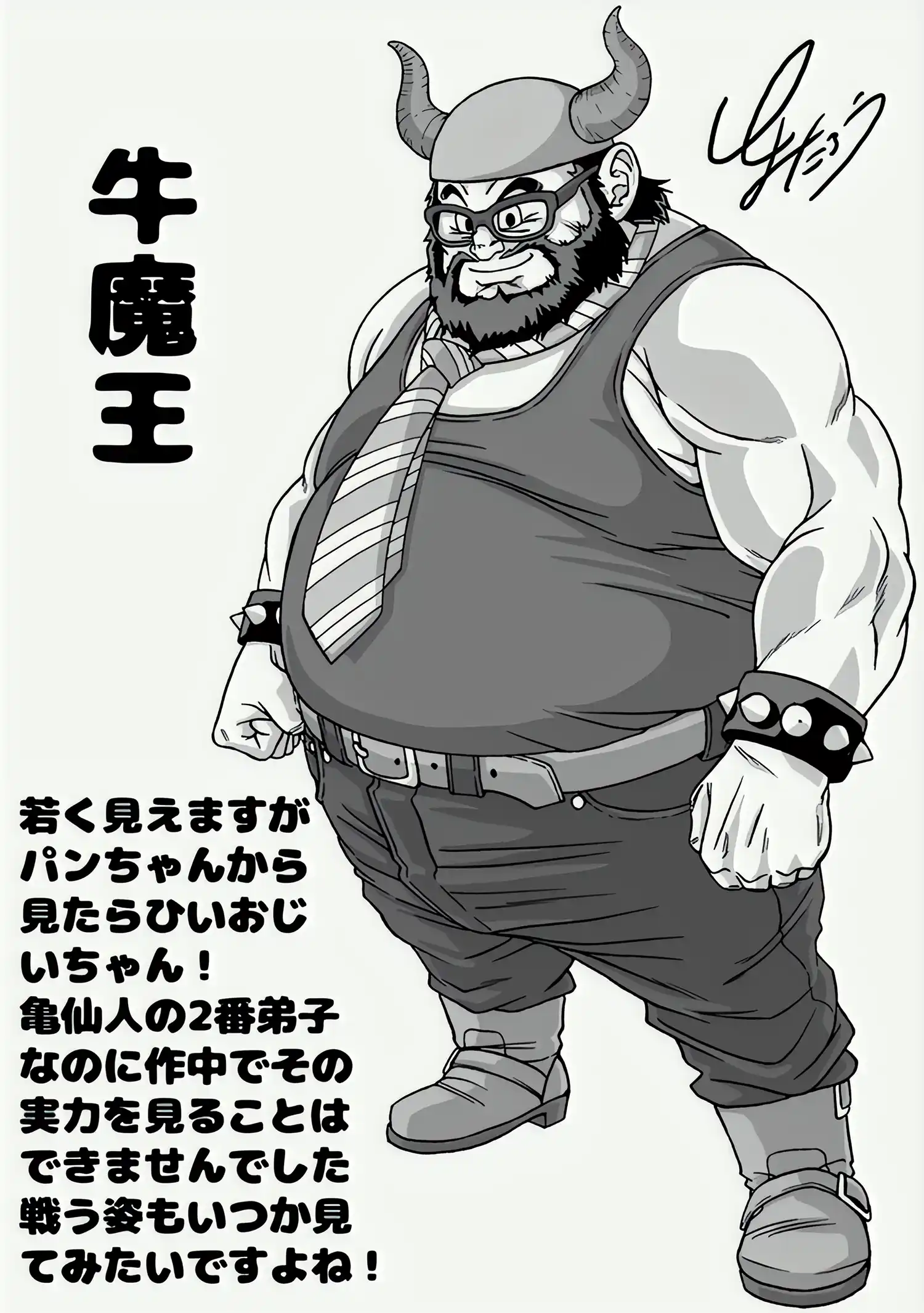 « Il paraît jeune, mais c’est l’arrière-grand-père de Pan-chan ! Bien qu’il soit le deuxième disciple de Kame Sennin, nous n’avons jamais pu voir sa véritable puissance dans l’histoire. On aimerait vraiment le voir combattre un jour, pas vrai ? »