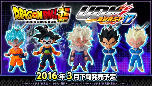 Après les UDM Burst 16, voici les nouvelles mini figurines Dragon Ball UDM Burst 17 (Ultimate Deformed Mascot) qui sortent en ce joli mois de mars 2016 au Japon ! Cette 17ème série a beaucoup fait parler d’elle pour deux raisons : Le teasing sur l’arrivée de Gohan Super Saiyan 3 dans cette série, et l’erreur d’appellation avec les UDM Burst 16, corrigée depuis par Bandai.