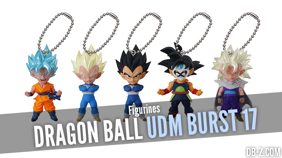 Les UDM Burst / UDM The Best sont de petites figurines Dragon Ball – en réalité des portes-clés Dragon Ball – fabriquées par Bandai. Beaucoup de personnages représentés dans cette série sont issus de Dragon Ball Z, Dragon Ball GT, ou particulièrement encore de Dragon Ball Heroes, comme Bardock Super Saiyan 3 ou Broly Super Saiyan 4. Elles s’achètent généralement dans les machines à sous (gashapons) généralement dans les environs de 200 ¥ / 1,50 € l’unité, et on s’en sert surtout de porte-clé ou de décoration pour sac, trousse, etc… Vous pouvez les acheter dans les machine à pièce (gashapon) au Japon, ou par exemple sur le Dragon Ball Store.