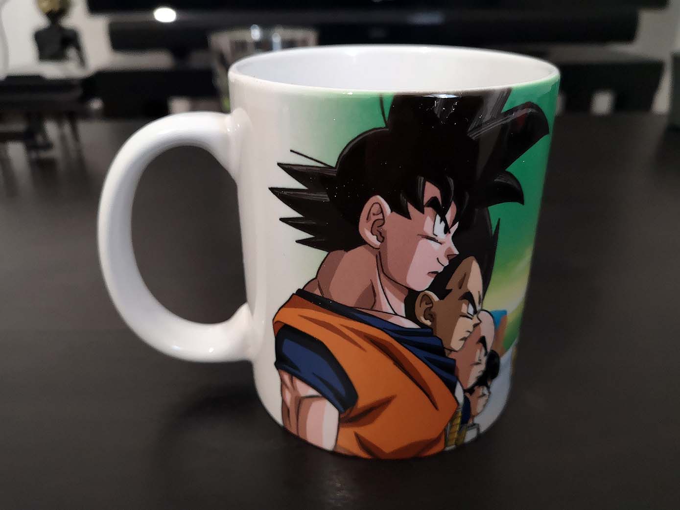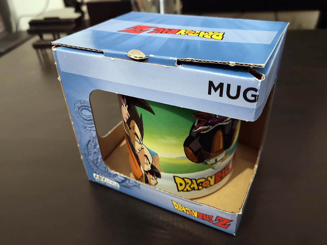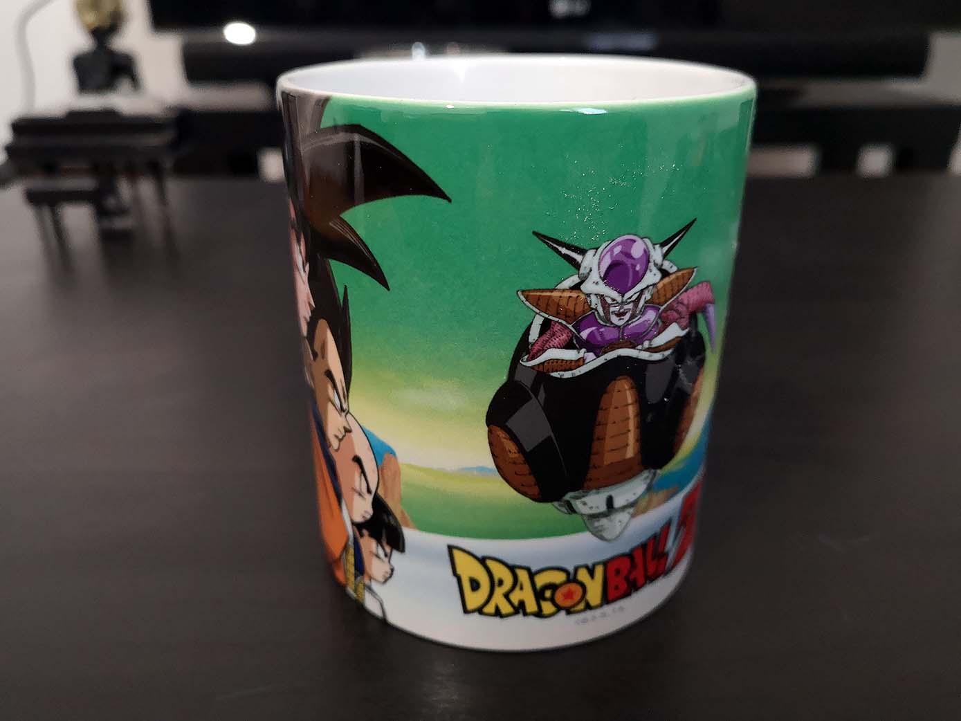 Ce mug Dragon Ball Z en céramique a une contenance de 320 ml. Goku, Vegeta, Krilin et Gohan, sont prêts à affronter le commando Ginyu de Freezer. C’est signé ABYstyle, pour une valeur seule d’environ 9,90 euros.